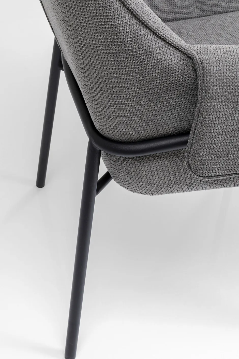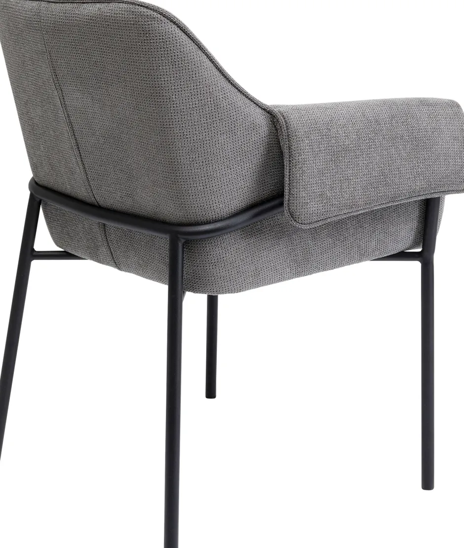 - Grauer Armlehnstuhl mit schlanken Metall-Beinen in Schwarz