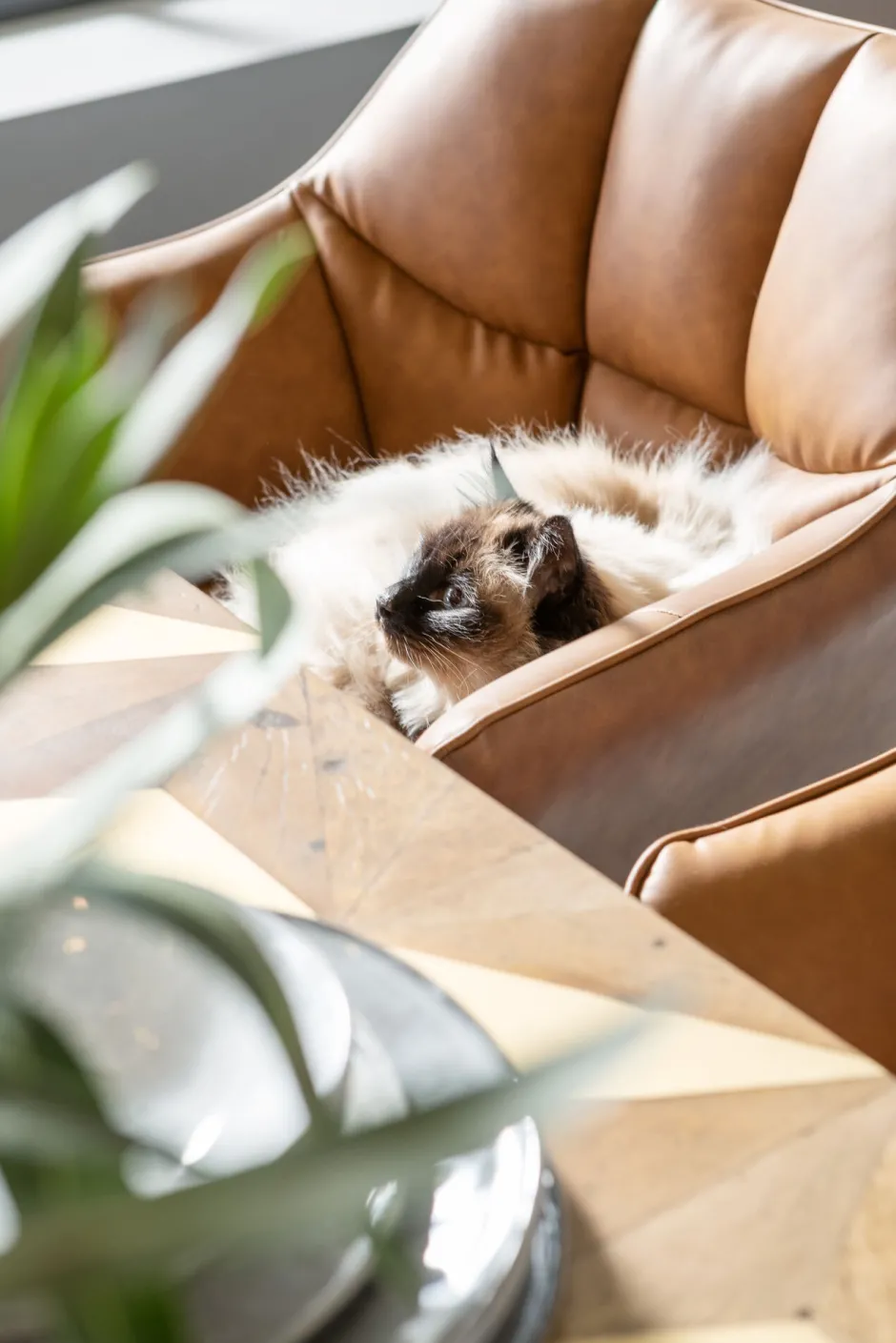 - Pflegeleichter cognacfarbener Bezug in lässiger Vintage Lederoptik