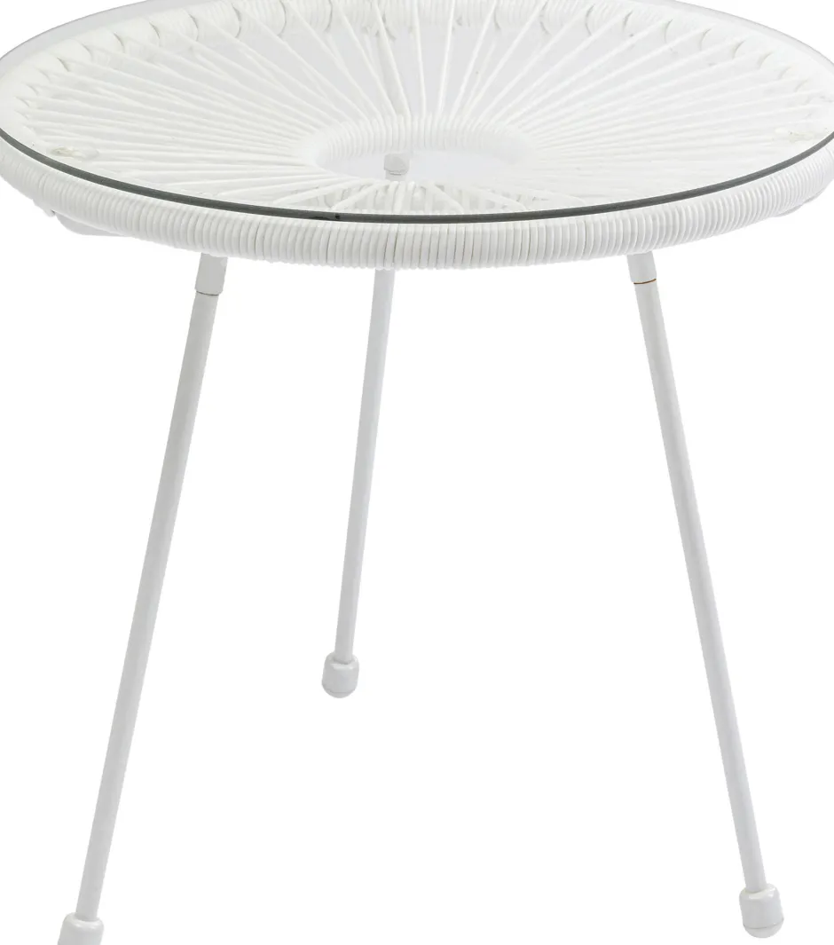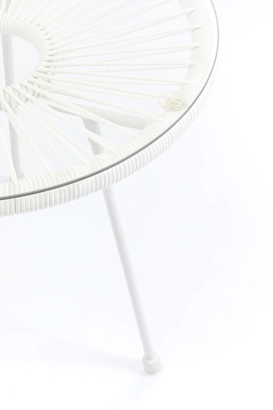- Weißer, runder Beistelltisch mit Glasplatte im Acapulco Design für drinnen und draußen