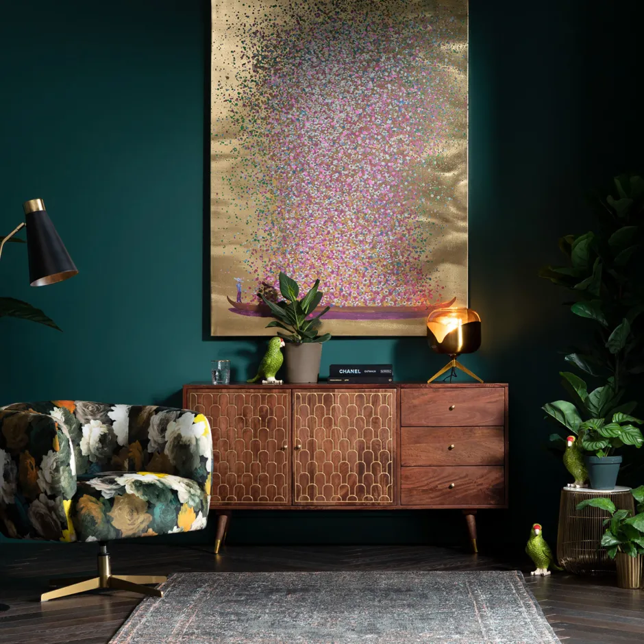 - Rechteckiges, buntes Wandbild auf Canvas-Leinwand gedruckt und detaillreich von Hand mit Acrylfarbe bemalt