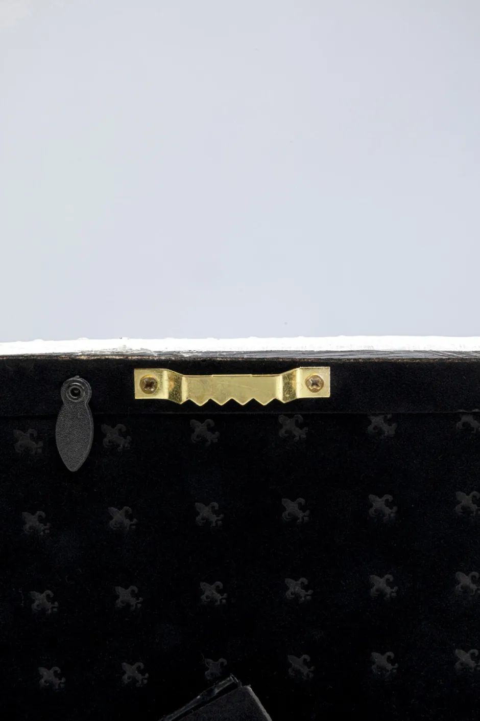 - Die geometrische Musterung in zeitlosem Schwarz-Weiß schafft eine dynamische Optik