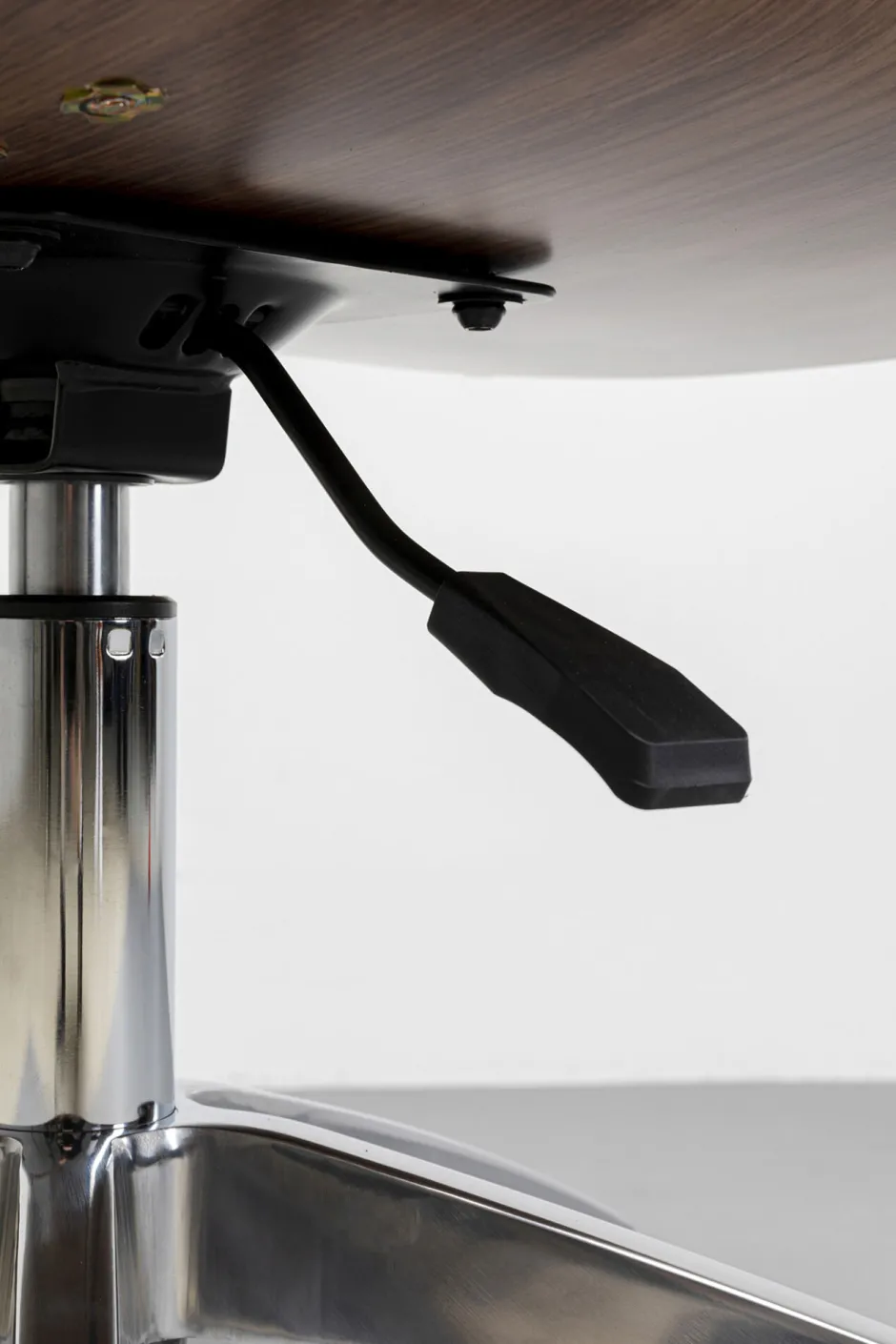 - Schwarzer Bürostuhl mit Rollen in moderner Schalenform mit echtem Walnuss-Holz