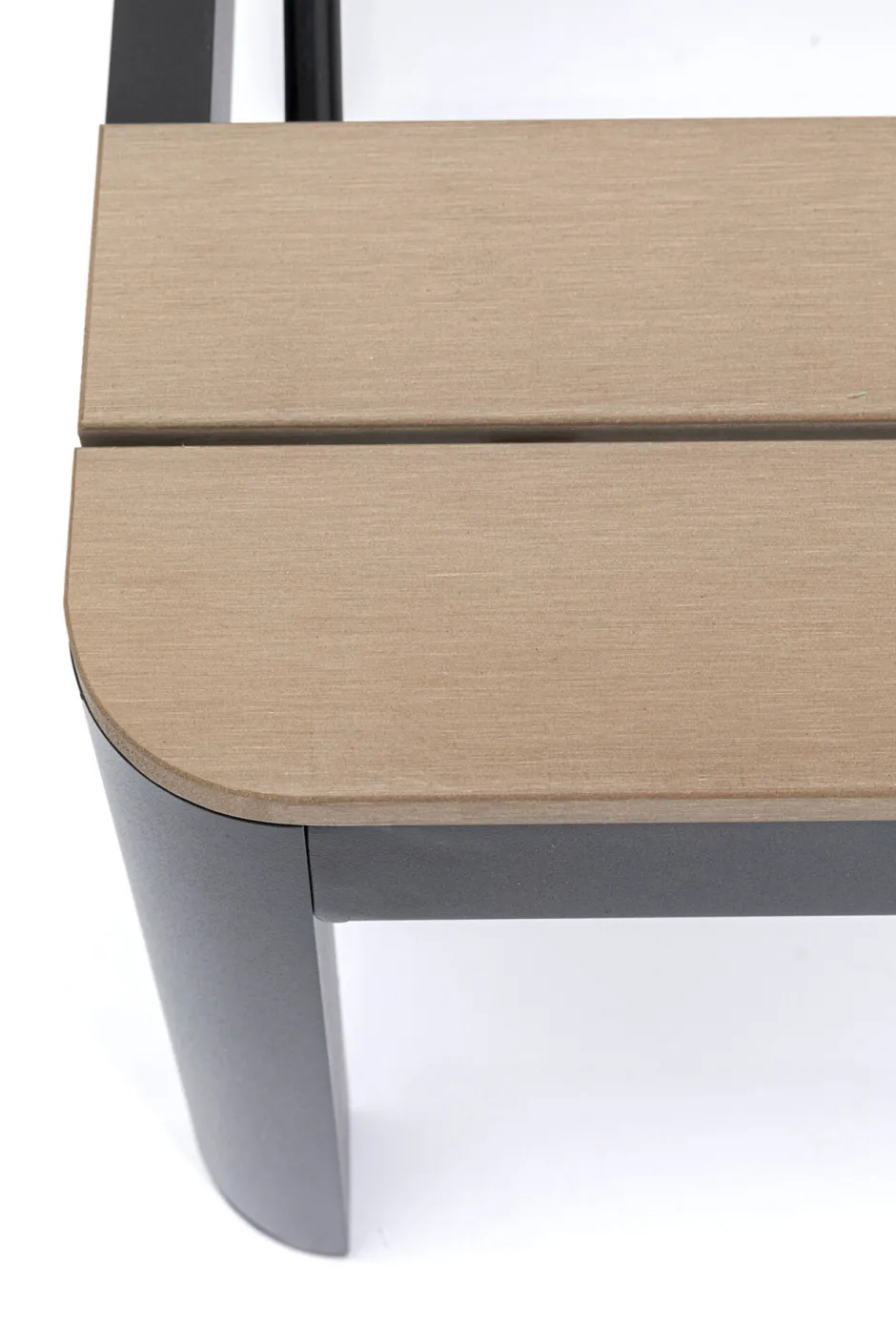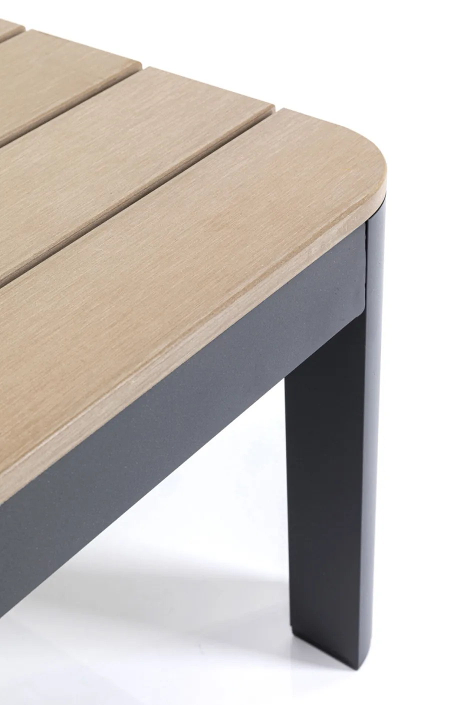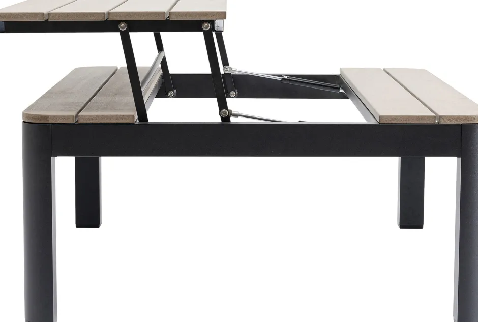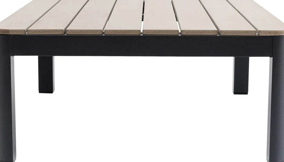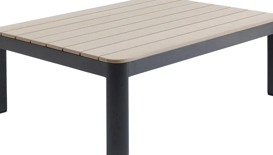 - Gestell aus pulverbeschichtetem Aluminium, Tischplatte aus pflegeleichtem Polywood, einem Mix aus Kunststoff und Naturfaser
