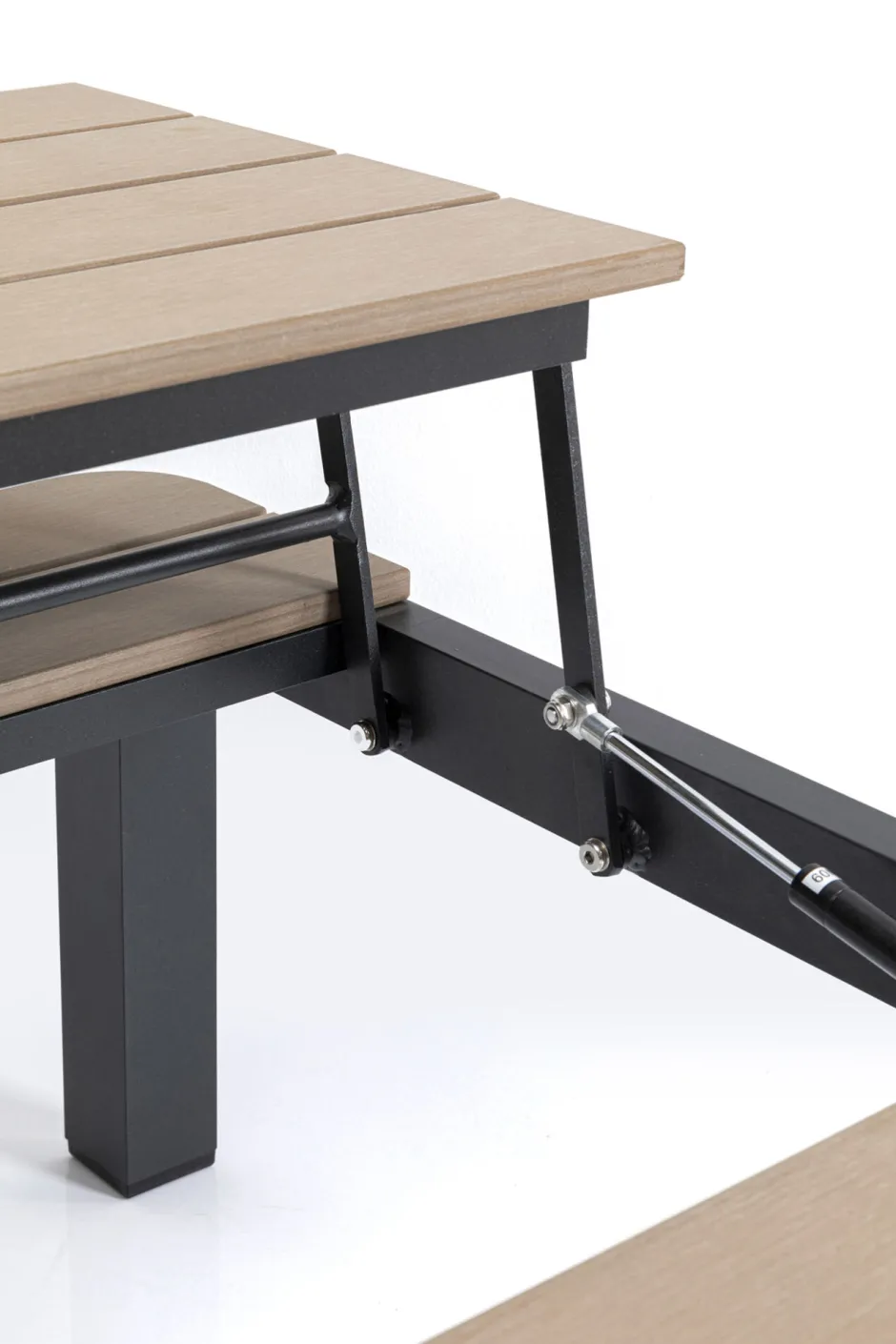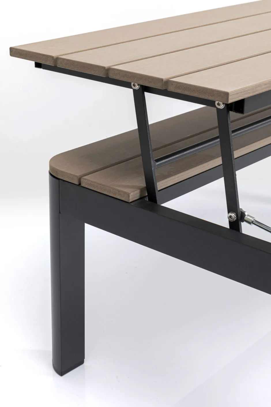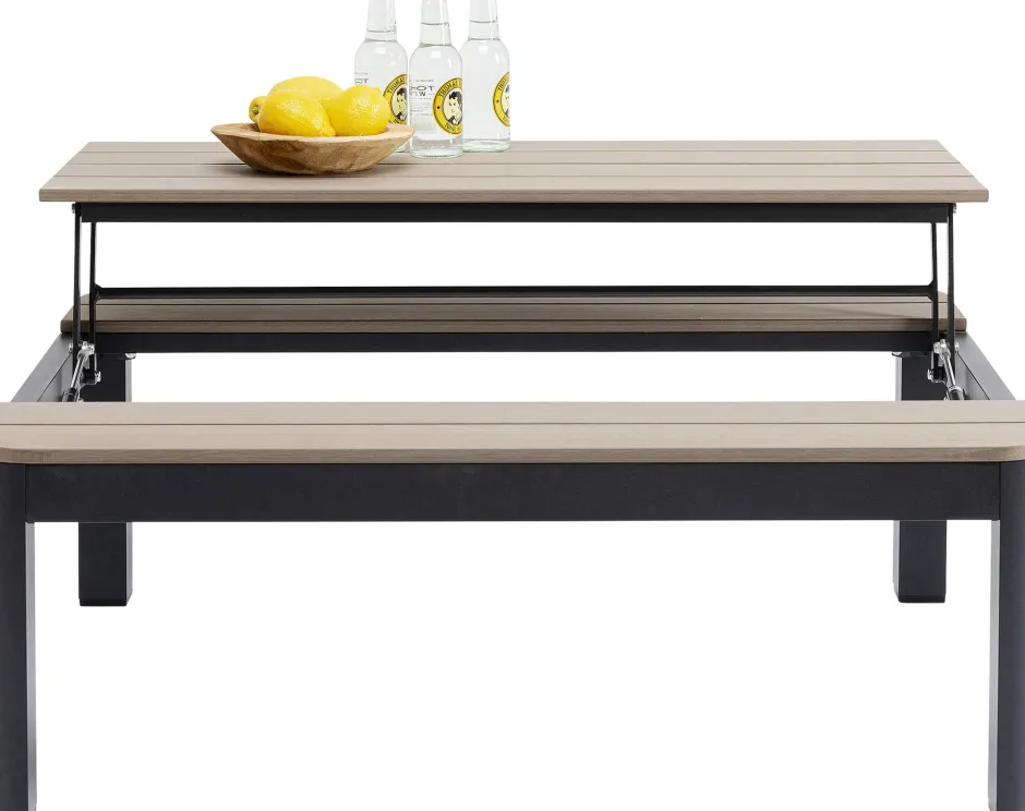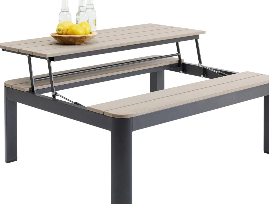 - Aus dem Couchtisch wird ganz einfach durch Aufklappen ein Essplatz mit Sitzbank