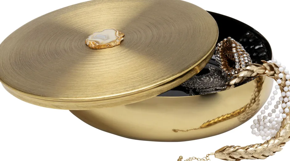 - Goldene Deko-Dose aus Stahl mit Achatstein, 8.5 x 31 x 31 Zentimeter (H/B/T)