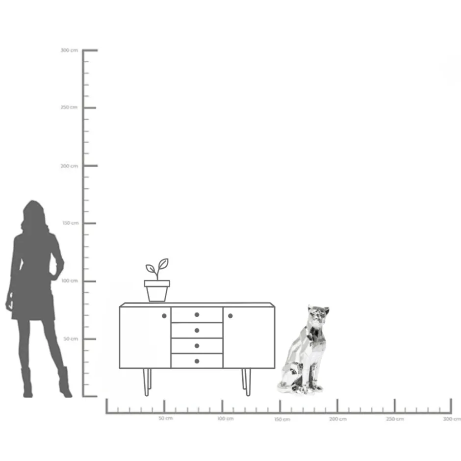 Die Deko Figur besticht durch die anmutige und stolze Haltung. Ganz in Chrom und im angesagten Nietenlook, erwacht die Wildkatze in einem neuen Zeitalter. In weiteren Ausführungen erhältlich.Material: (Polyresin)