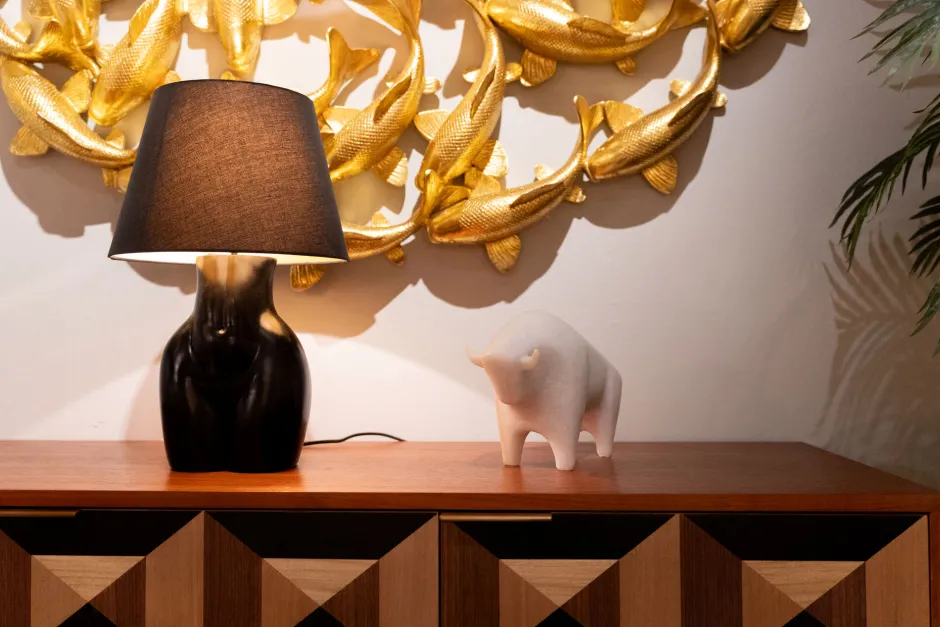 - Die skulpturale Form dieses Stieres verleiht jedem Raum eine moderne Ästhetik
