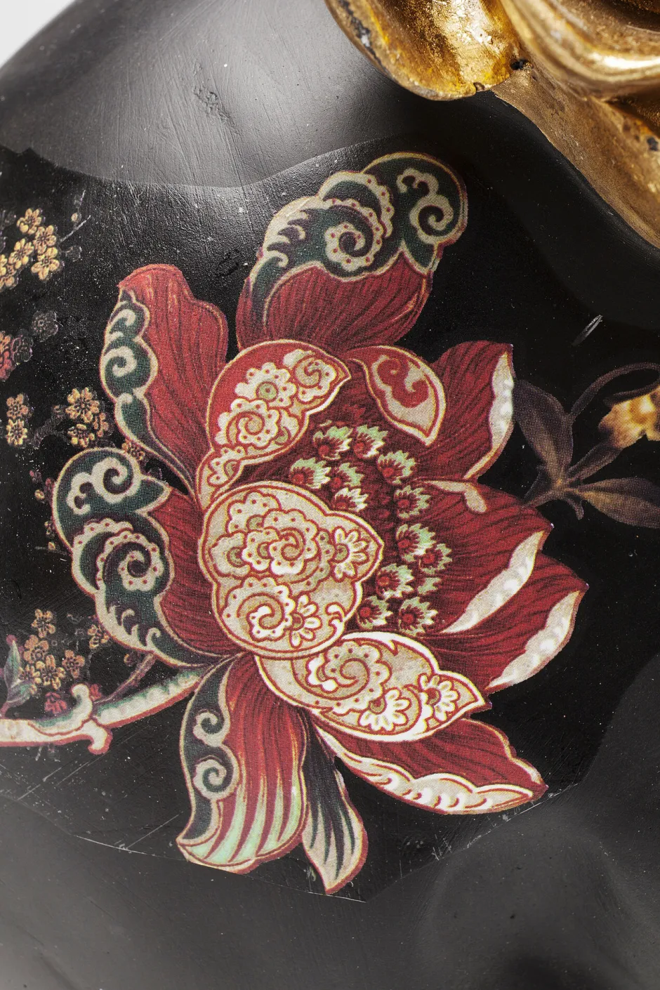 - Origineller Eyecatcher: Der schwarze Totenkopf mit Blüte und Tattoo zieht alle Blicke auf sich