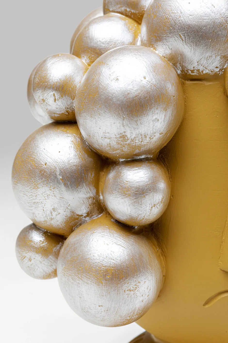 - Die ausdrucksstarke Gesichtsform in sattem Gelb und detailreiche Perlenfrisur verleihen dem Objekt einen kunstvollen Charakter