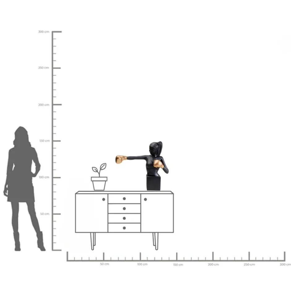 - Schwarze Deko-Figur Boxerin mit goldenen Details, 68 x 40 x 50 Zentimeter (H/B/T)