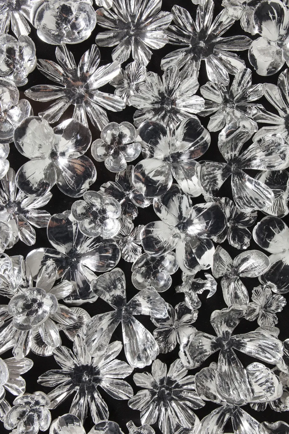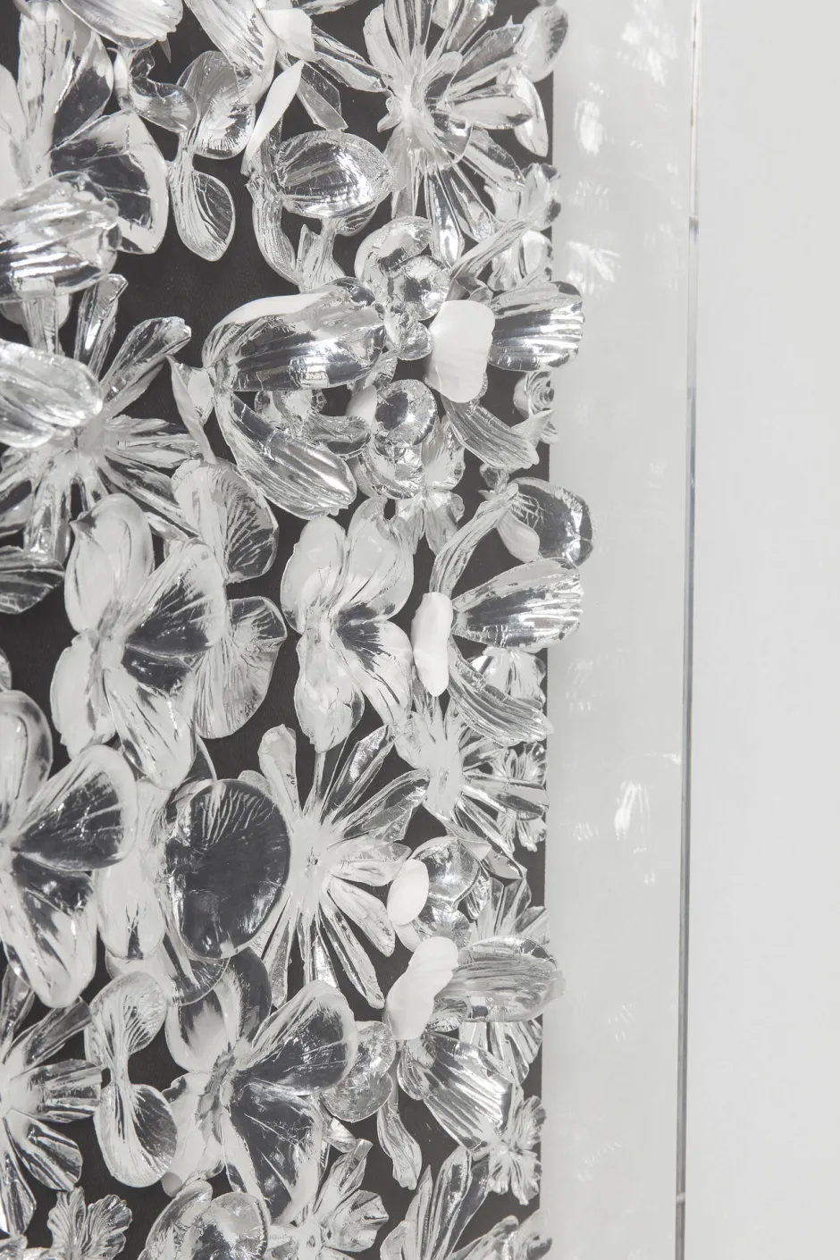 - Ein dreidimensionales Kunstwerk für Blumenfans: Dieser Plexiglasrahmen mit silbernen Blüten ist ein großes Statement-Bild für einen Raum