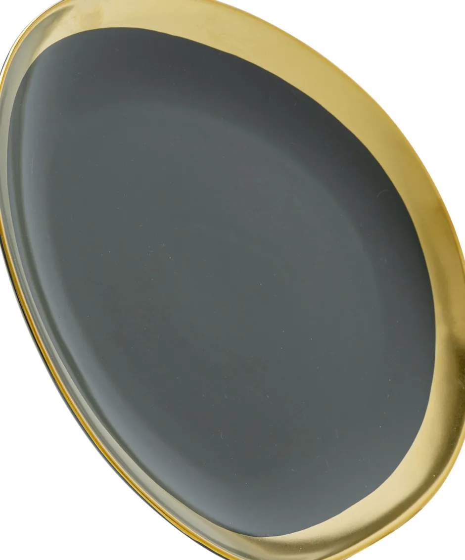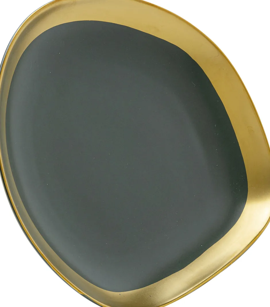 - Edle, von Hand aus Keramik hergestellte Geschirrserie in einem sehr dunklen Grün mit mattem Goldrand