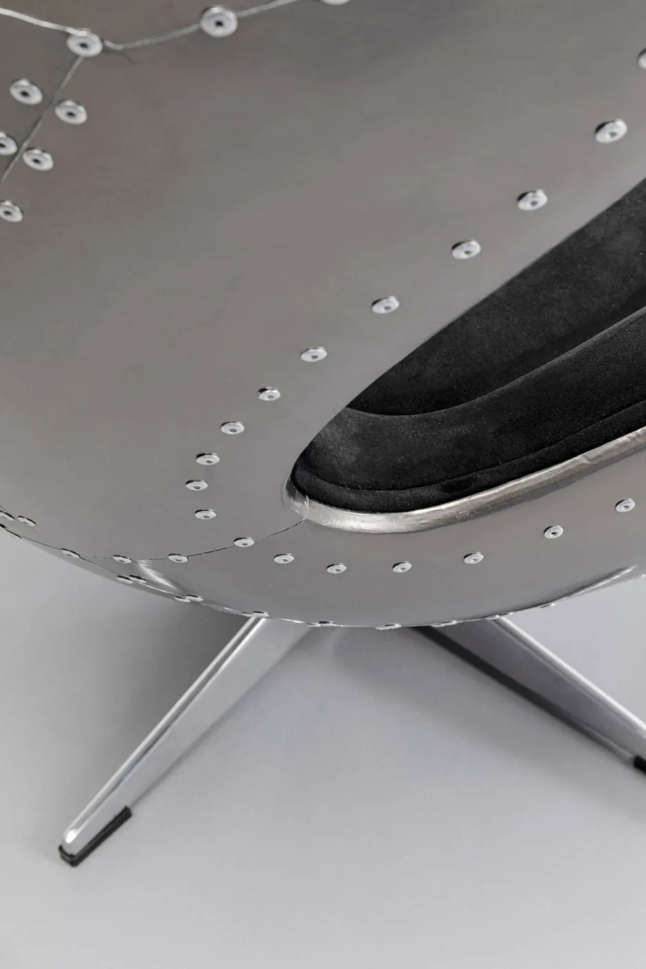 - Exzentrischer Lounge-Sessel mit genieteter Schale aus poliertem Metall