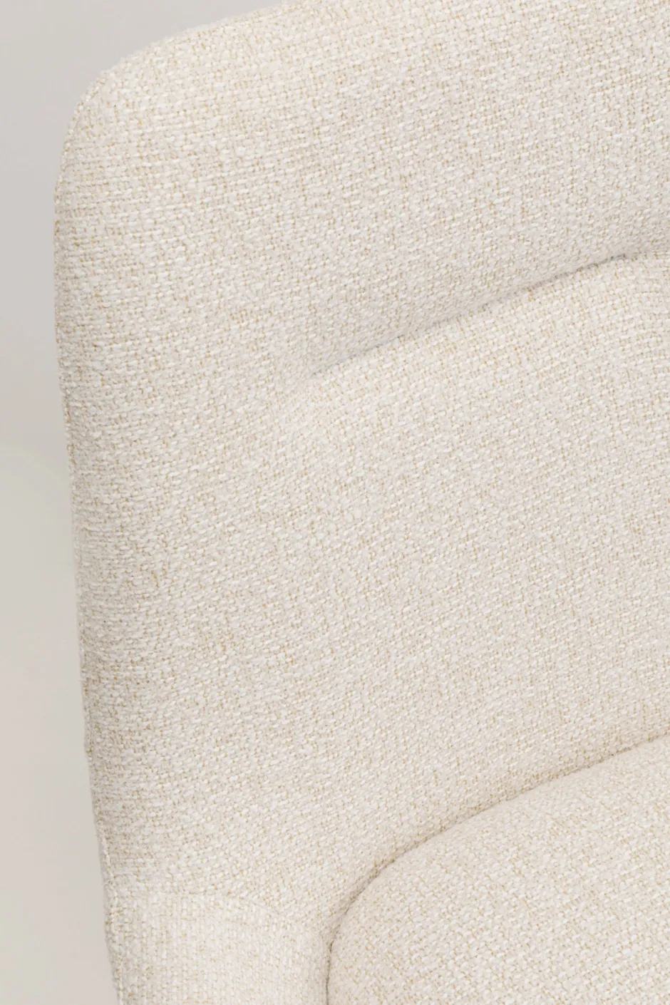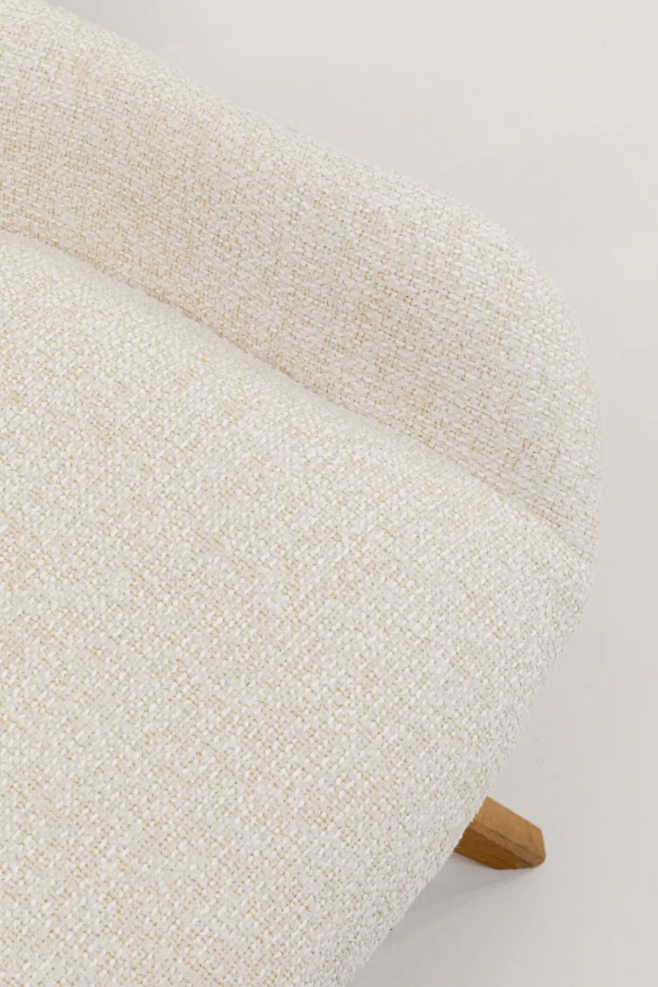 - Der moderne Bouclé-Bezug in zartem Creme harmoniert perfekt mit den Beinen aus massivem Eichenholz