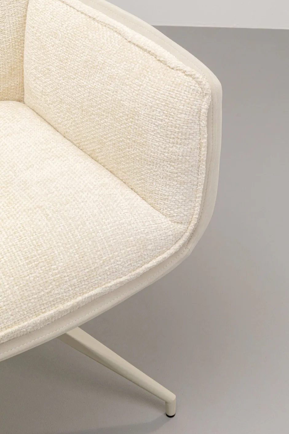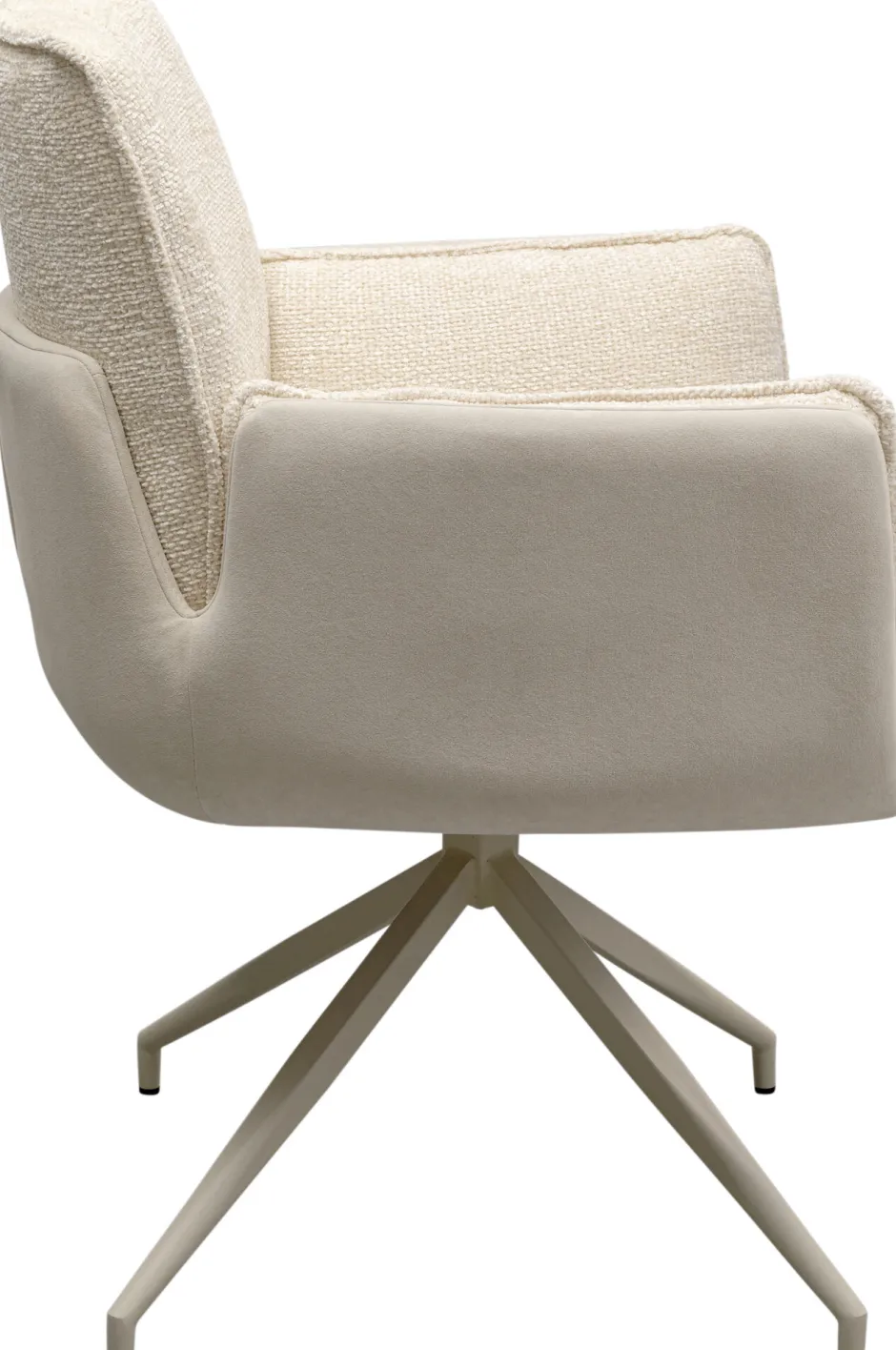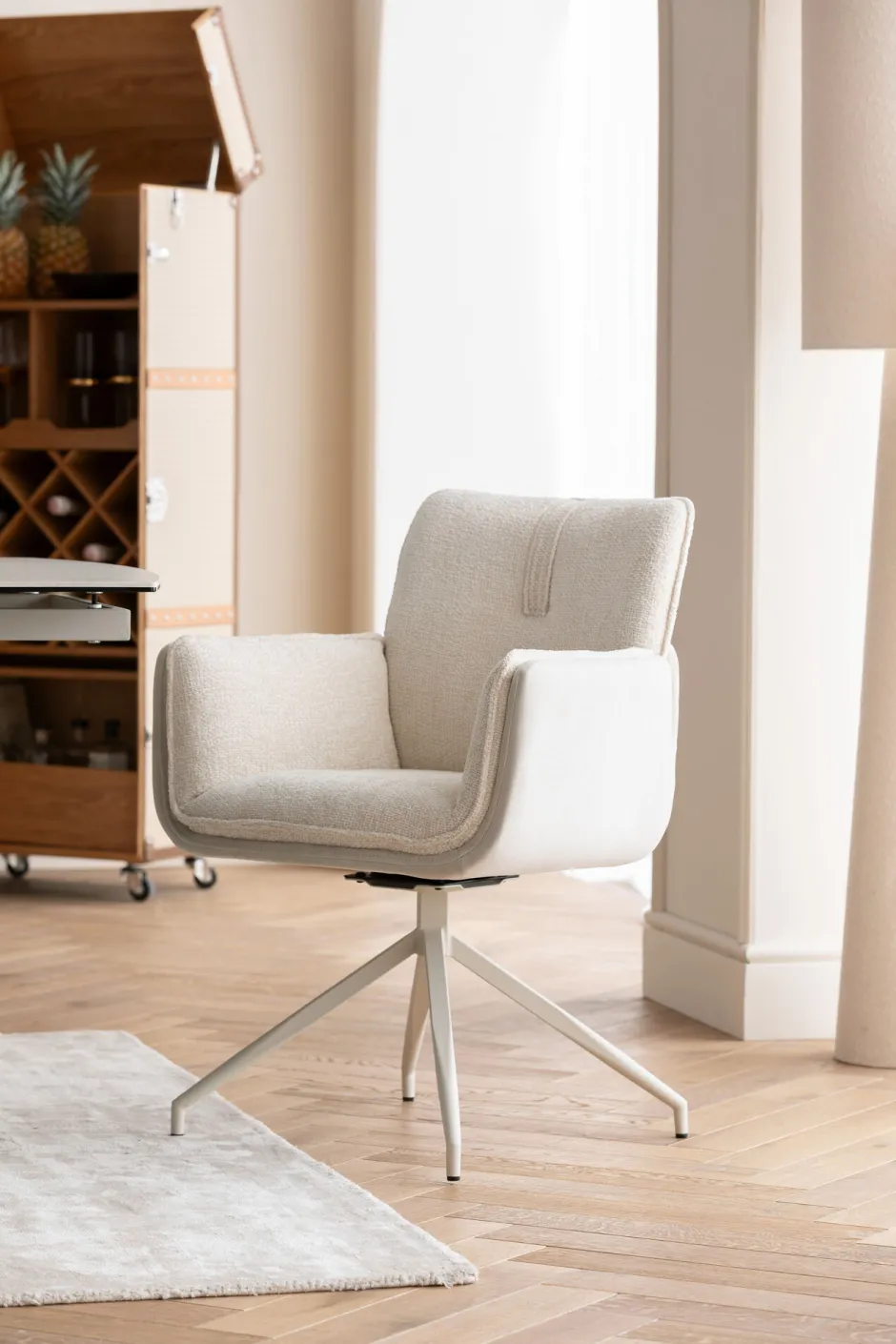 - Gepolsterter Drehstuhl mit Armlehnen in Weiß und Beige, 85 x 62.5 x 63.5 Zentimeter (H/B/T)