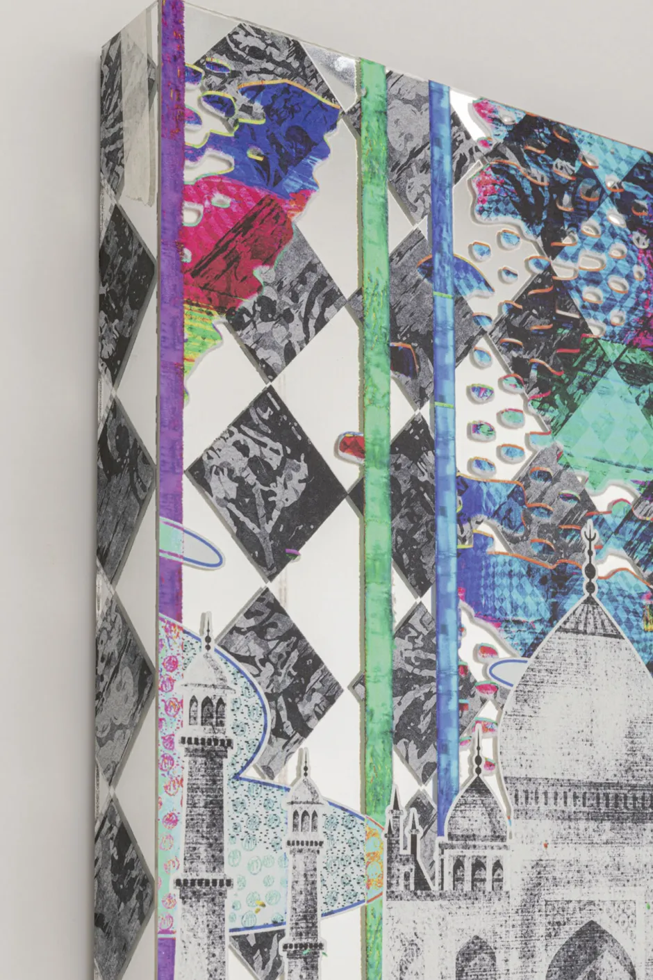 - Großes Wandbild mit kunstvollem Motiv in bunten Farben, 180 x 108 x 12 Zentimeter (H/B/T)