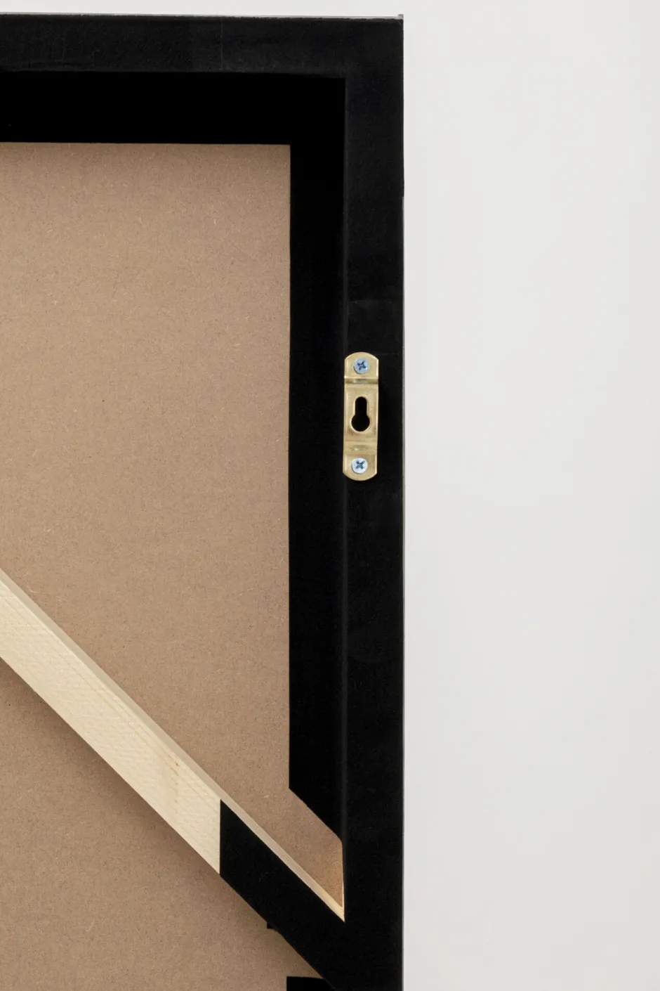 - Auf der Rückseite sind Bilderhaken für die einfache Wandmontage bereits montiert