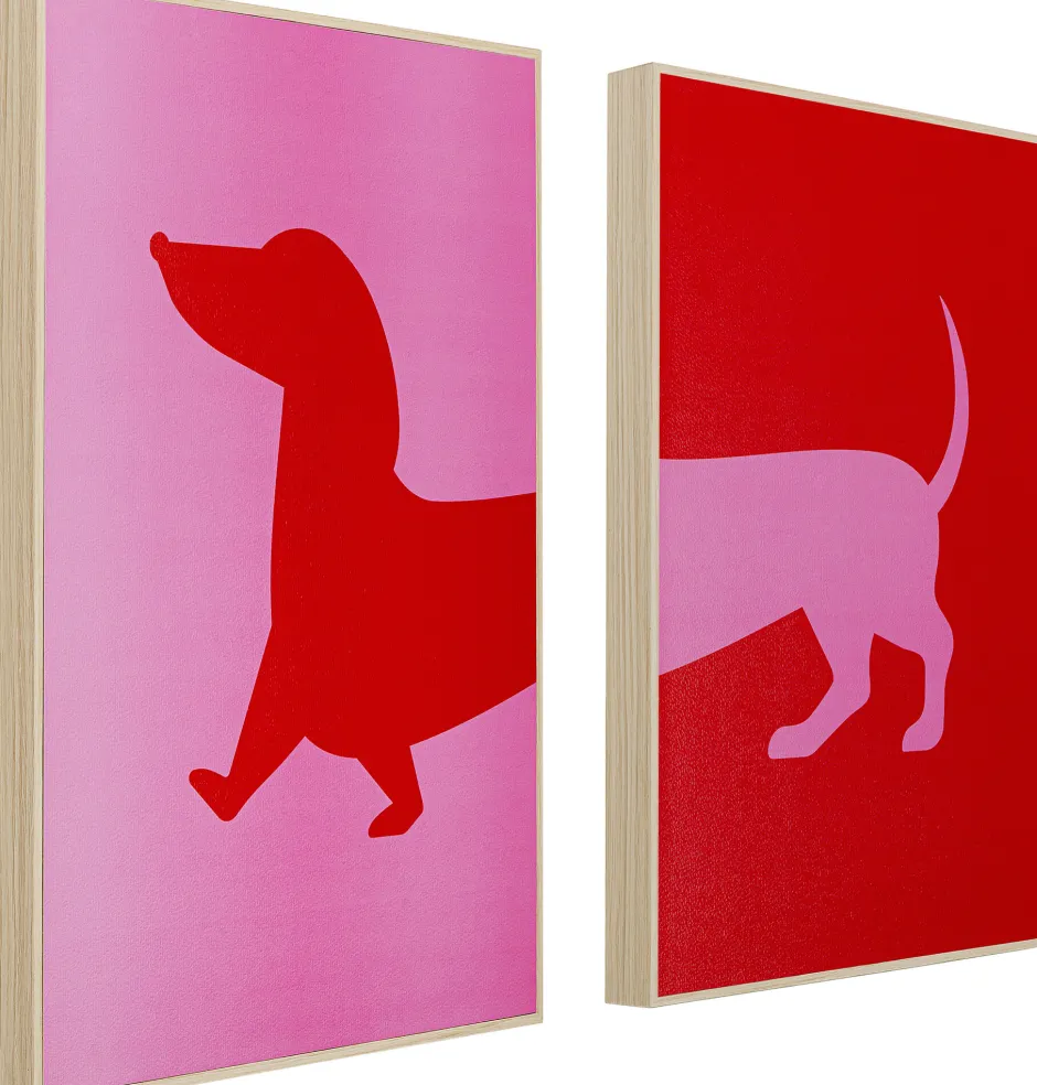 - 2-er Set Bilder Dackel in Pink und Rot, Maße je Bild 40 x 30 x 3 Zentimeter (H/B/T)