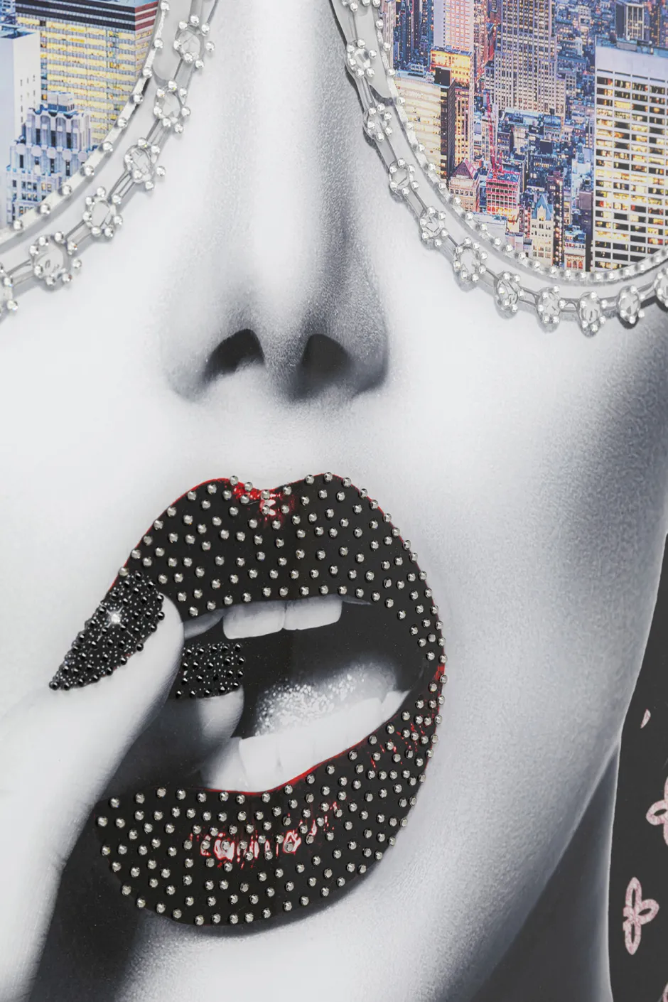 - Glasbild mit silberfarbenem Rahmen, das durch die aufgebrachten Strass-Steine besondere Effekte erzielt
