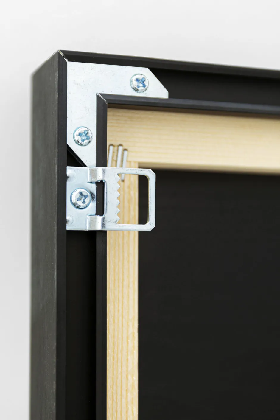- Auf der Rückseite sind am Rahmen Bilderhaken zur einfachen Aufhängung montiert
