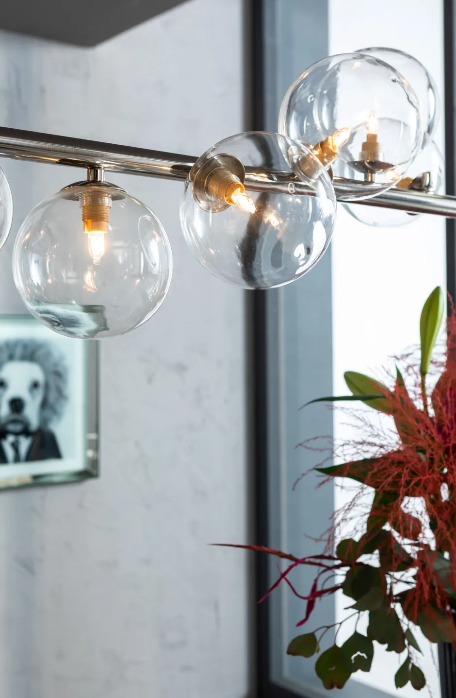 - Wie Satelliten umkreisen die kugelrunden Leuchtkörper die Deckenleuchte