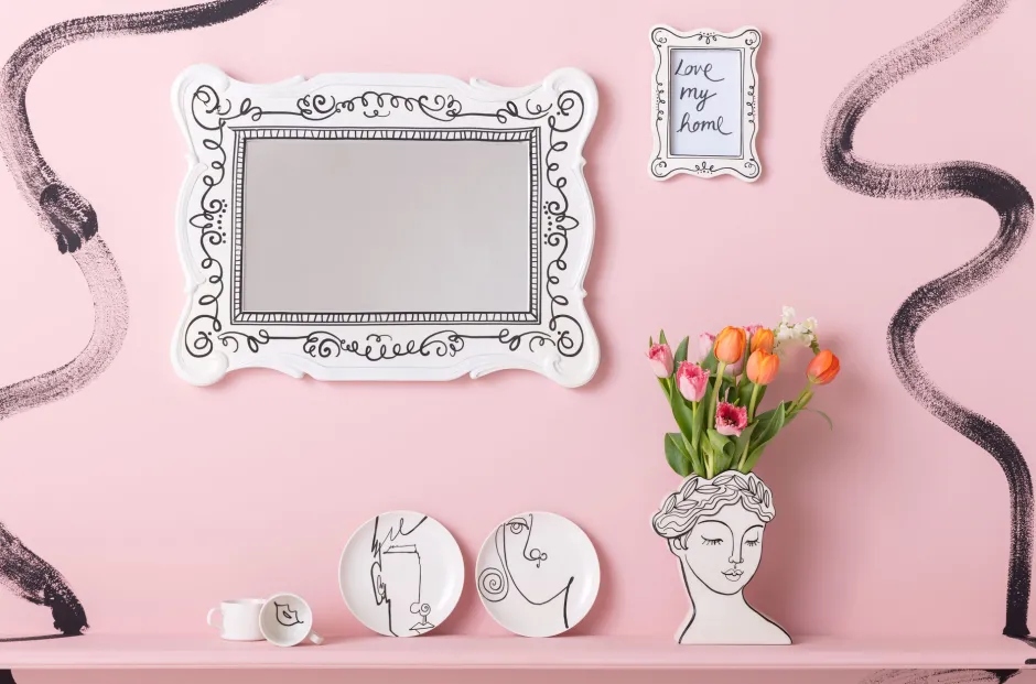 - Von Hand und mit einem Männergesicht im Stil der Line-Art bemalt, jedes Set ist ein Unikat