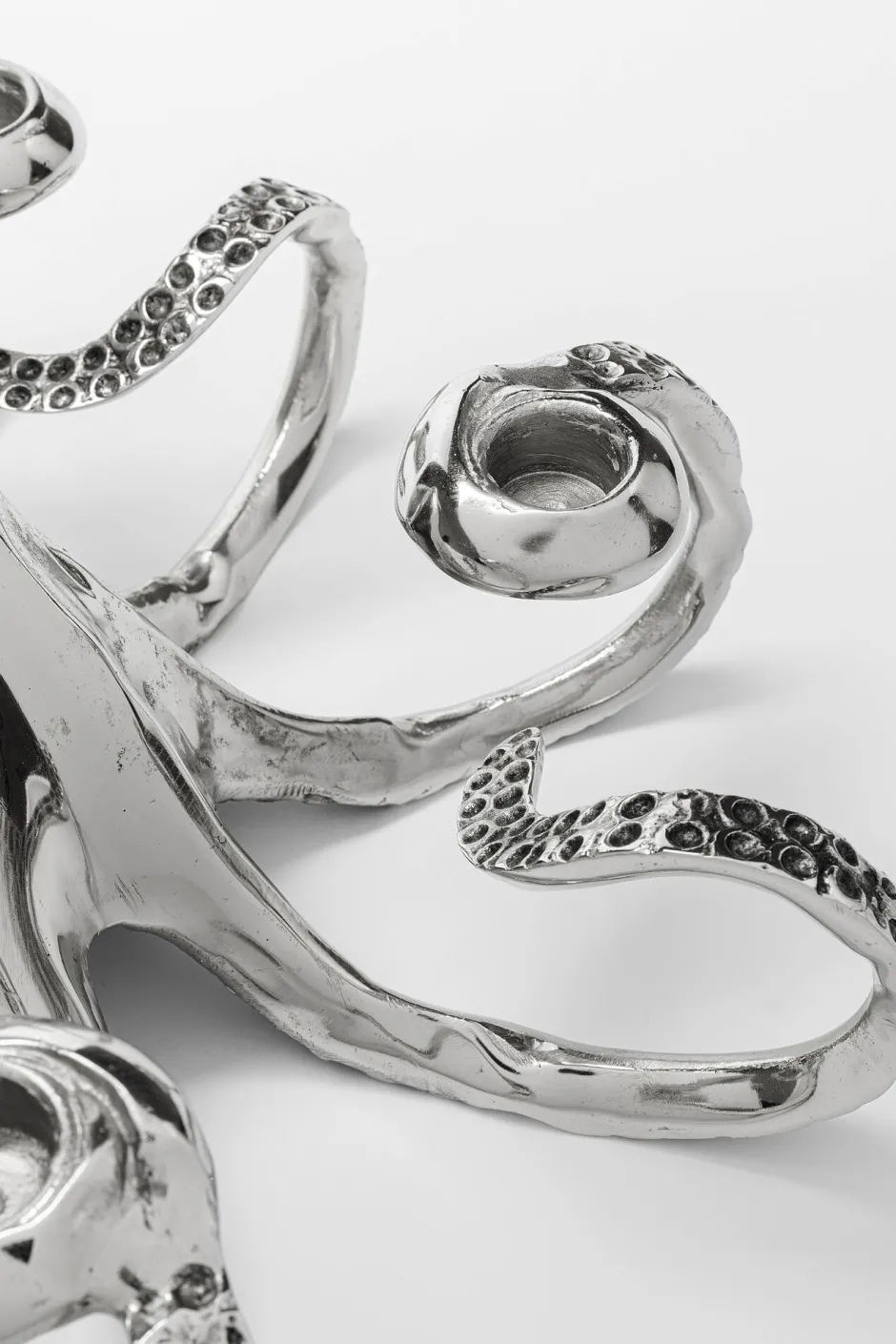 - Silbrig schimmernder Kerzenleuchter in Form eines Tintenfisches mit Haltern für vier Stabkerzen