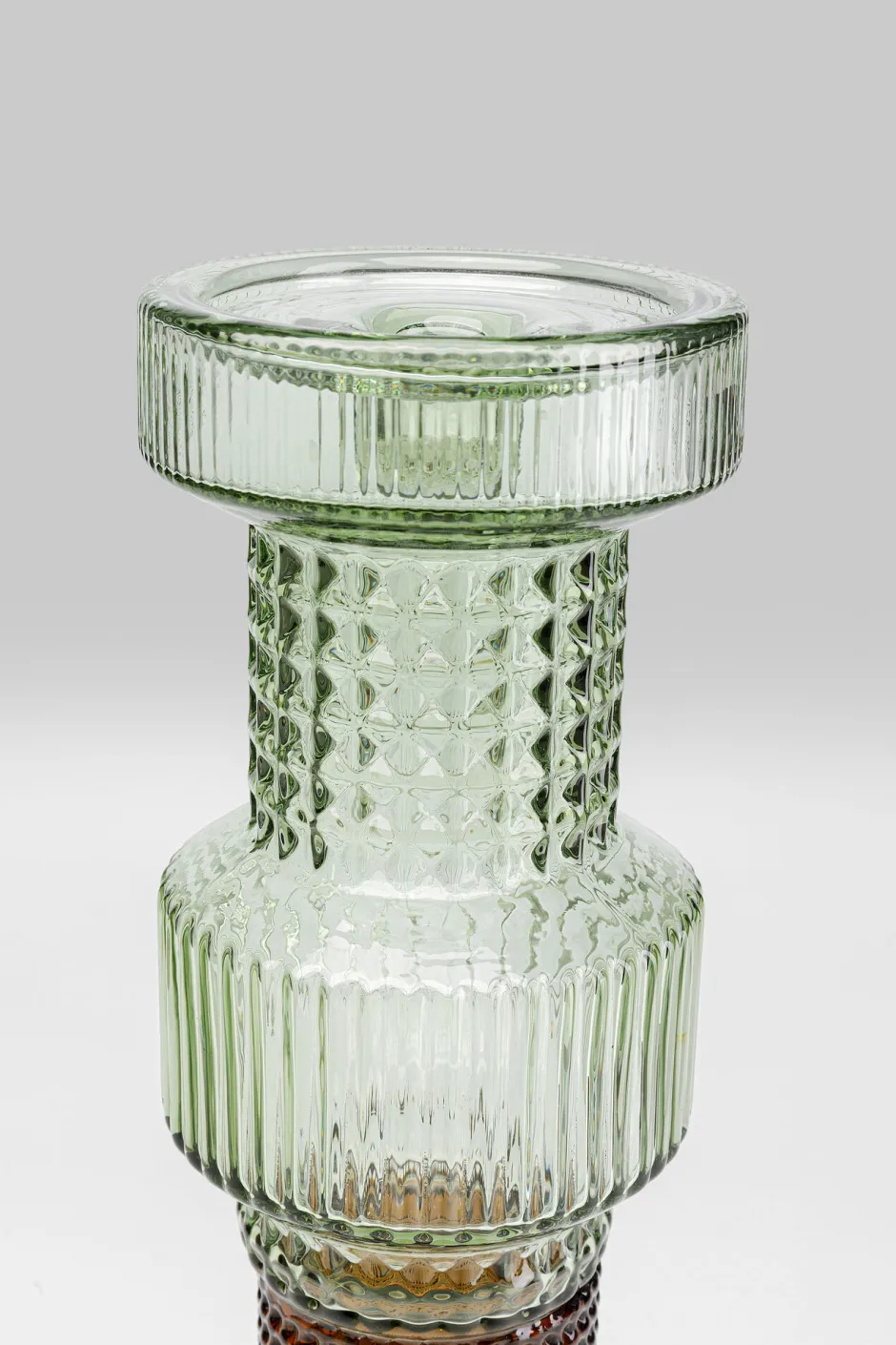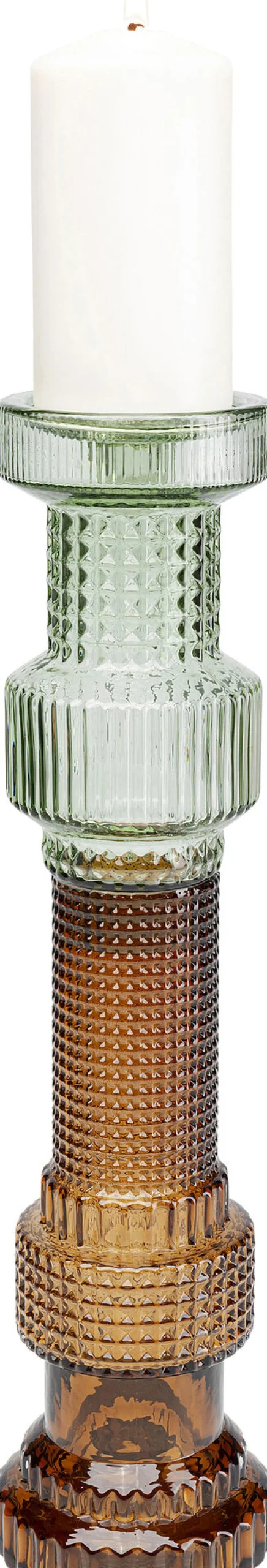 - Hoher Kerzenhalter aus unterschiedlich farbigem und geprägtem Glas in Grün und Braun für Stumpenkerzen