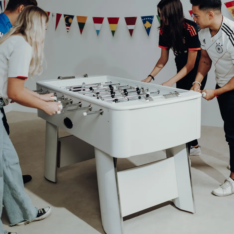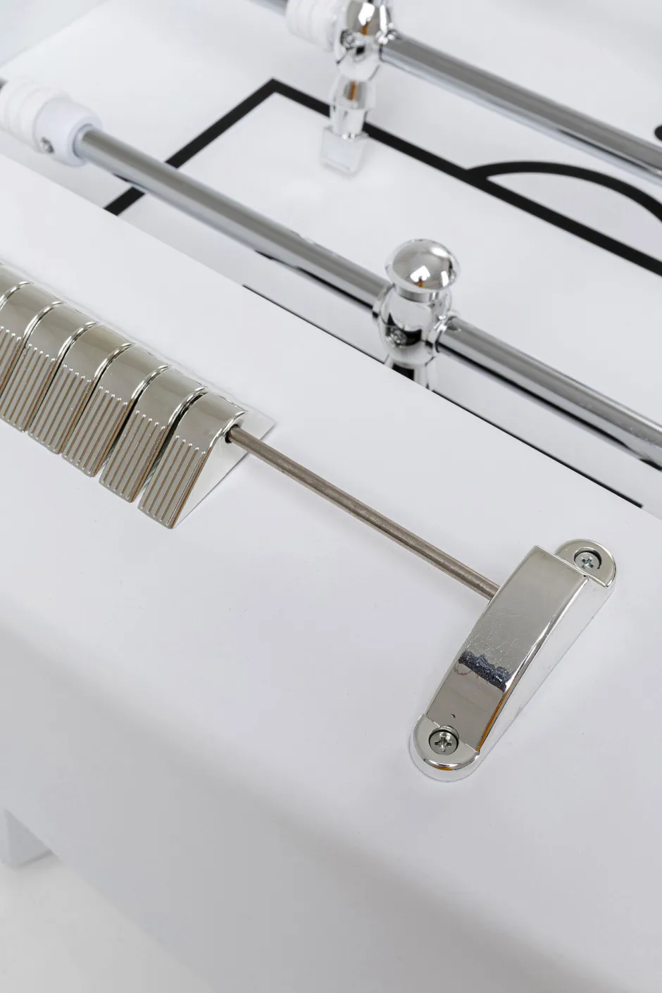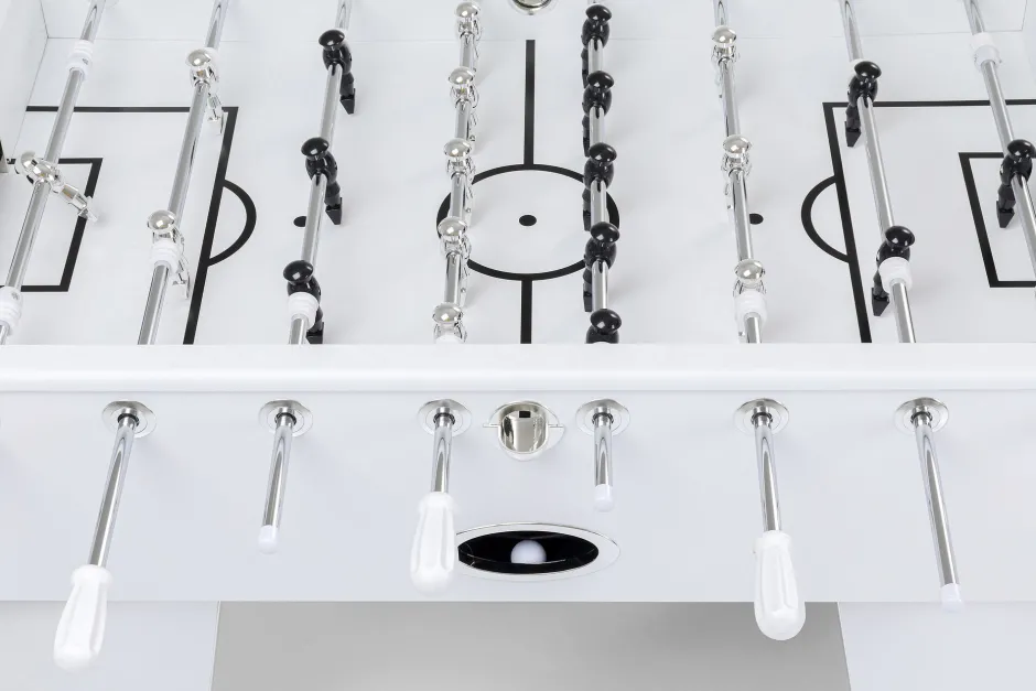 - Tischkicker ganz stylisch in Schwarz, Weiß und Chrom für Profi- und Familienturniere daheim – und jede Menge Spaß