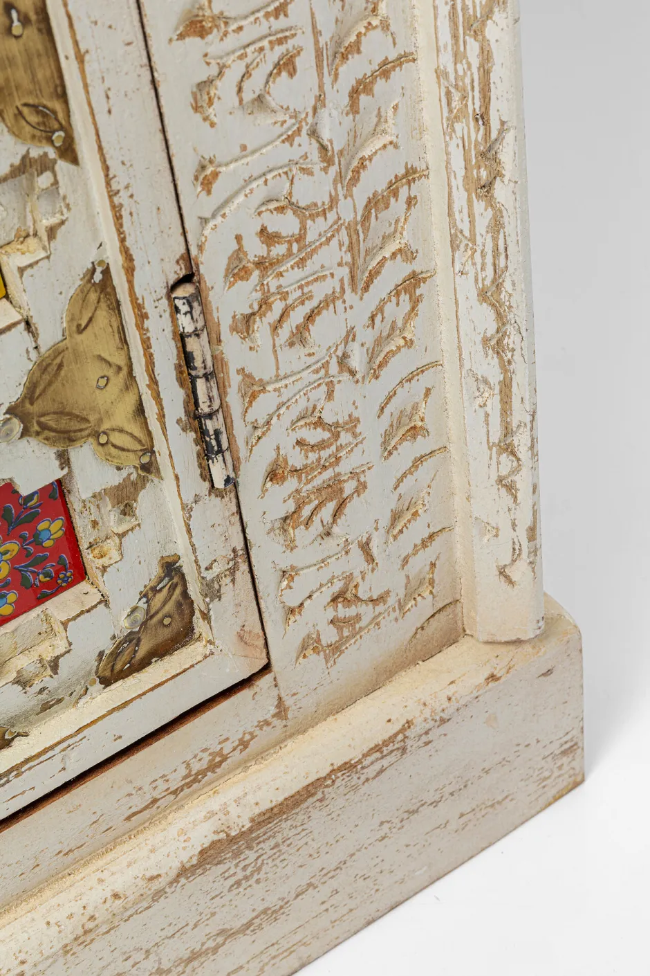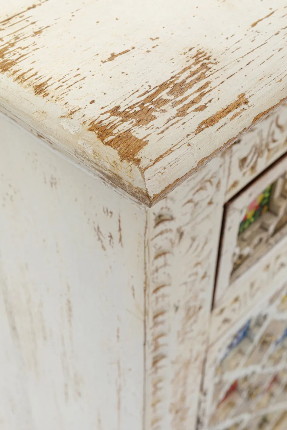 - In Naturweiß lackiert mit gewollten Vintage-Spuren für den authentischen Look, Griffe in Ringform