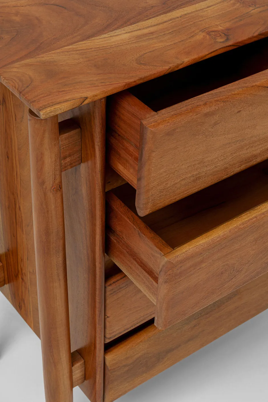 - Korpus und Fronten aus lackiertem Akazie Massivholz, das durch Stabilität, seine charakteristische Maserung und eine warme Optik überzeugt