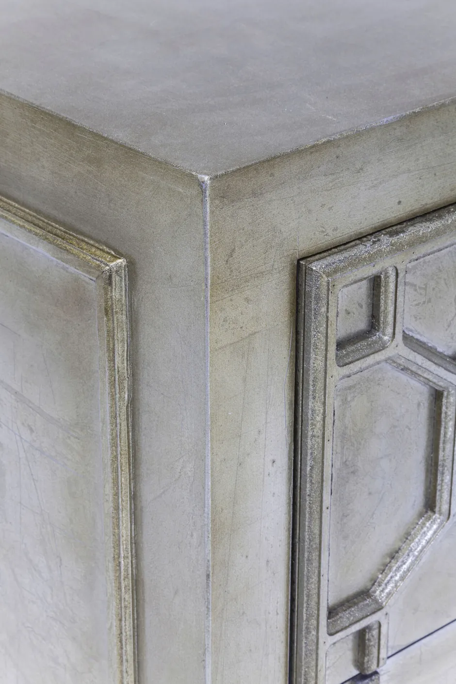 - Bildschöne, kleine Kommode mit verzierter Front, fünf Schubladen, lackiert in einem sanften, warmen Metallic-Ton