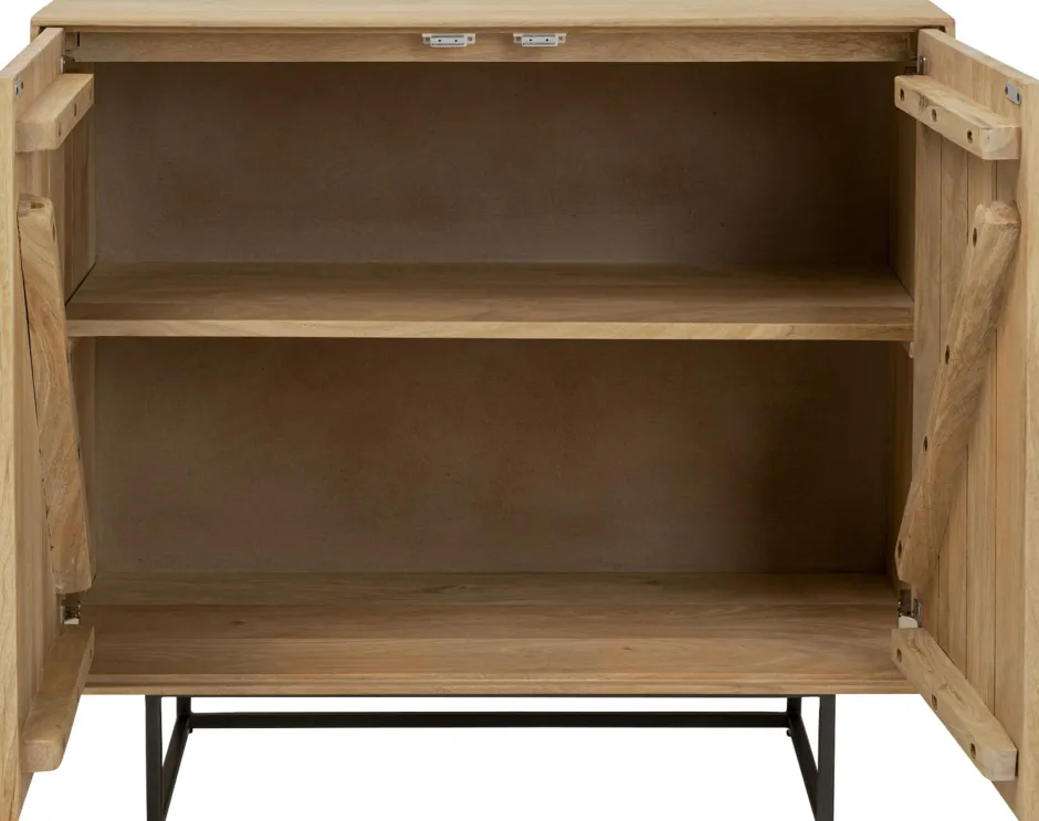 - Korpus und Fronten aus hellem, lackiertem Mango Massivholz, das durch Stabilität, seine charakteristische Maserung überzeugt