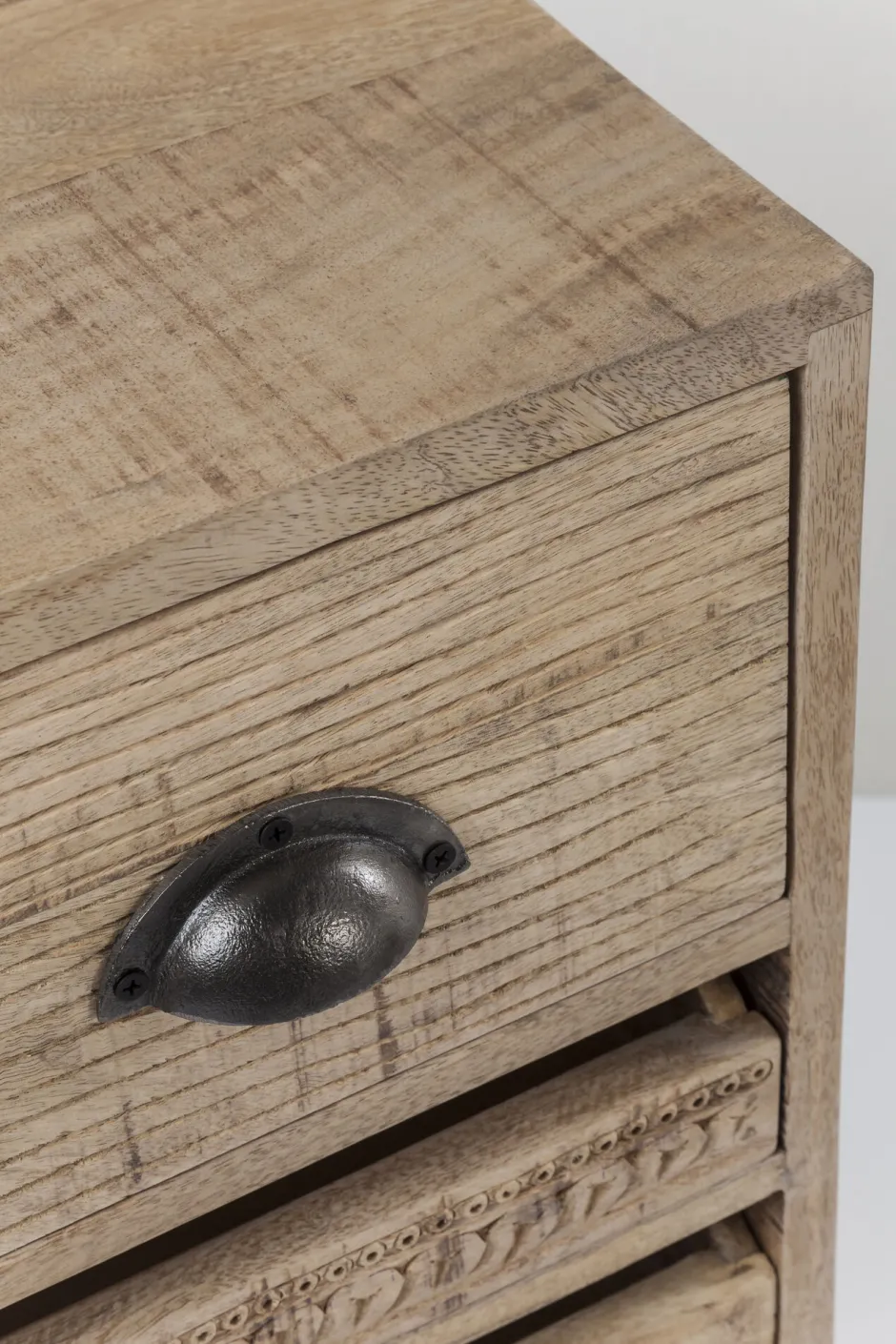 - Handgefertigte Kommode aus Mango-Massivholz mit dekorativen Schnitzereien und zehn Schüben mit individuellen Fronten