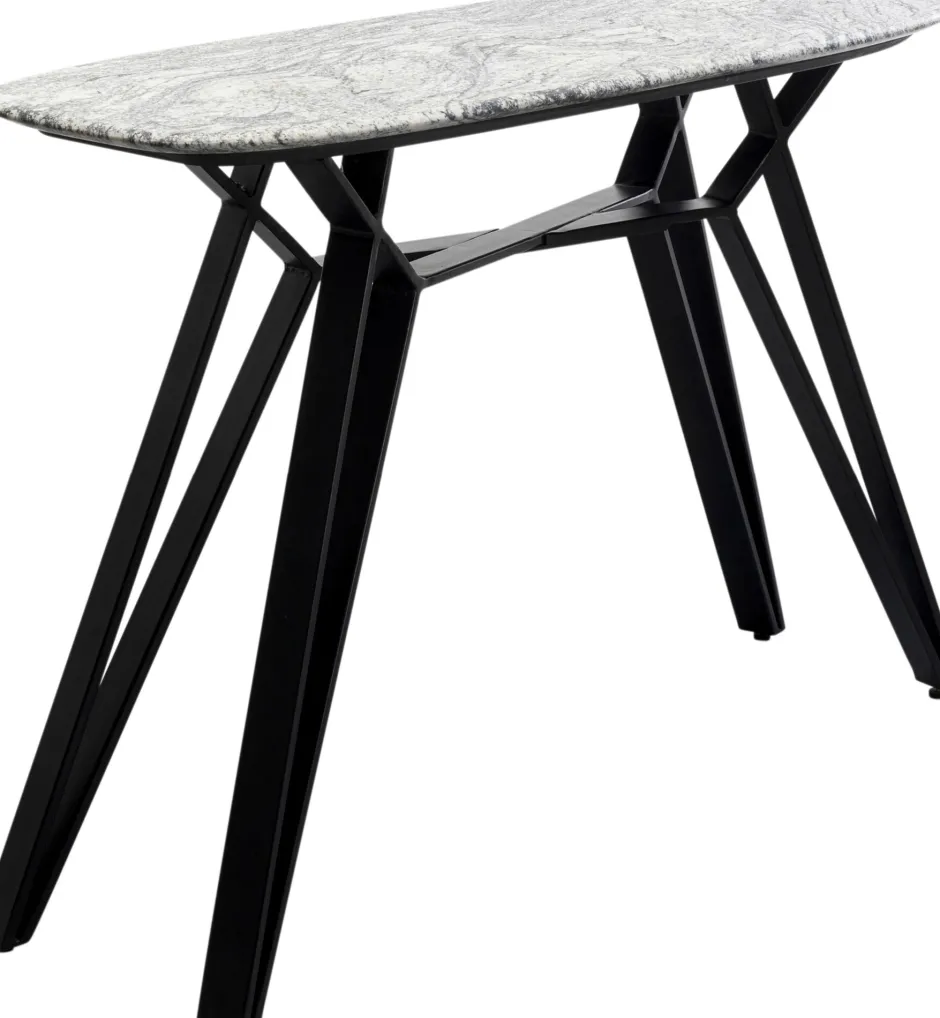 - Schwarze Konsole mit marmorierter Platte in Grau, 80 x 120 x 40 Zentimeter (H/B/T)