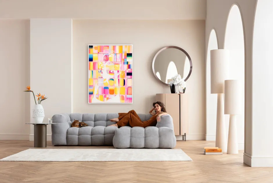 - Ein weiß lackierter Holzrahmen sorgt für die Stabilität des Pop-Art-Bildes