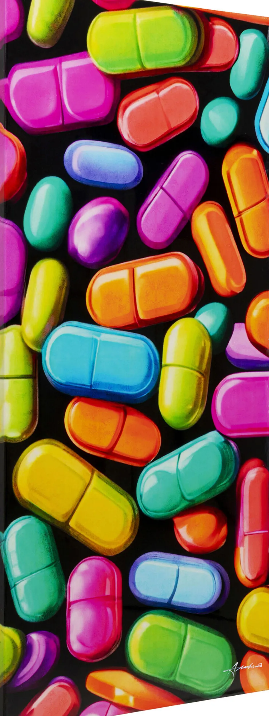 - Dieses Kunstwerk vereint pillenartige Formen in leuchtenden Farbnuancen zu einem dynamischen Blickfang