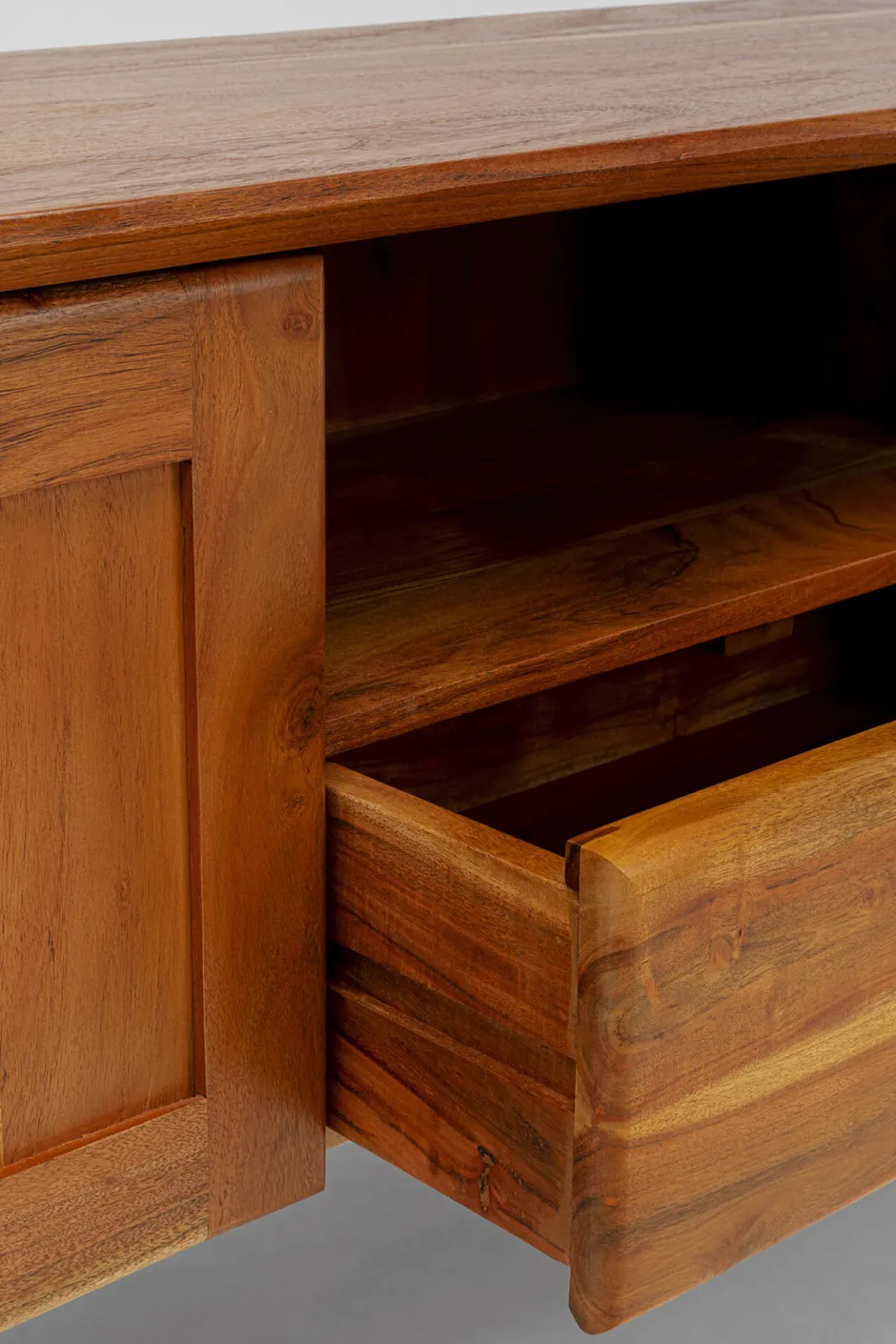 - Korpus und Fronten aus lackiertem Akazie Massivholz, das durch Stabilität, seine charakteristische Maserung und eine warme Optik überzeugt