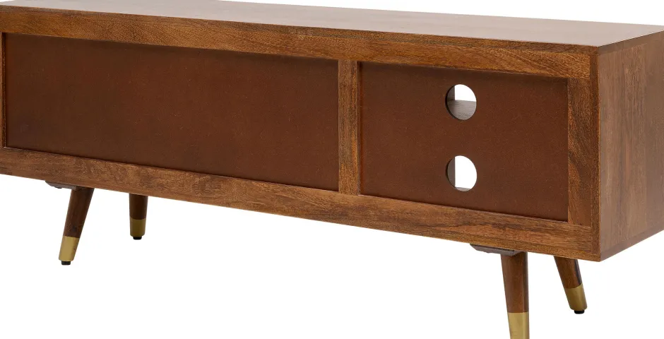 - Erinnert an die ersten TV Möbel der Sixties und setzt den Fernseher samt Bücker und Deko-Artikel stilvoll in Szene