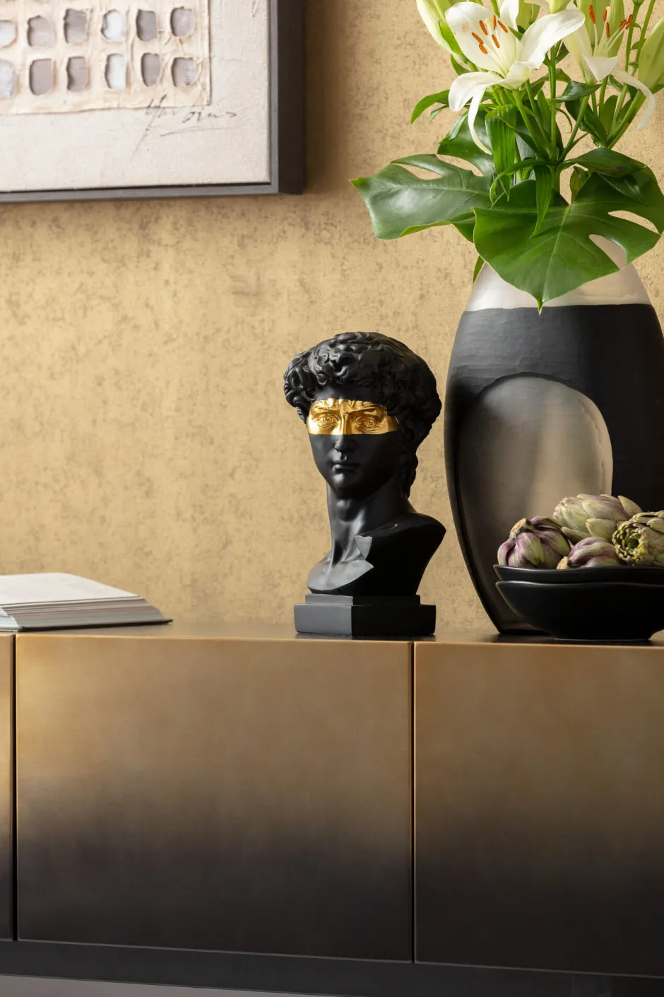 - Extravagante Front in Schwarz und Gold mit Farbverlauf aus gebürstetem Edelstahl