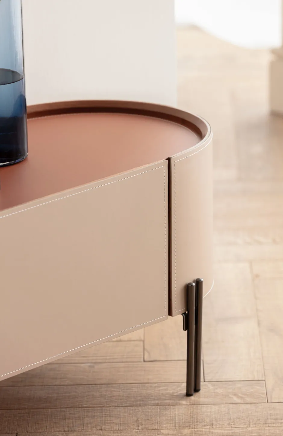 - Die feine weiße Stichnaht an den Rändern des Bezugs in Lederoptik setzt raffinierte Akzente