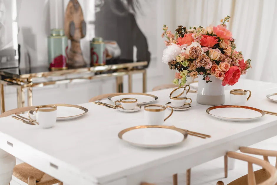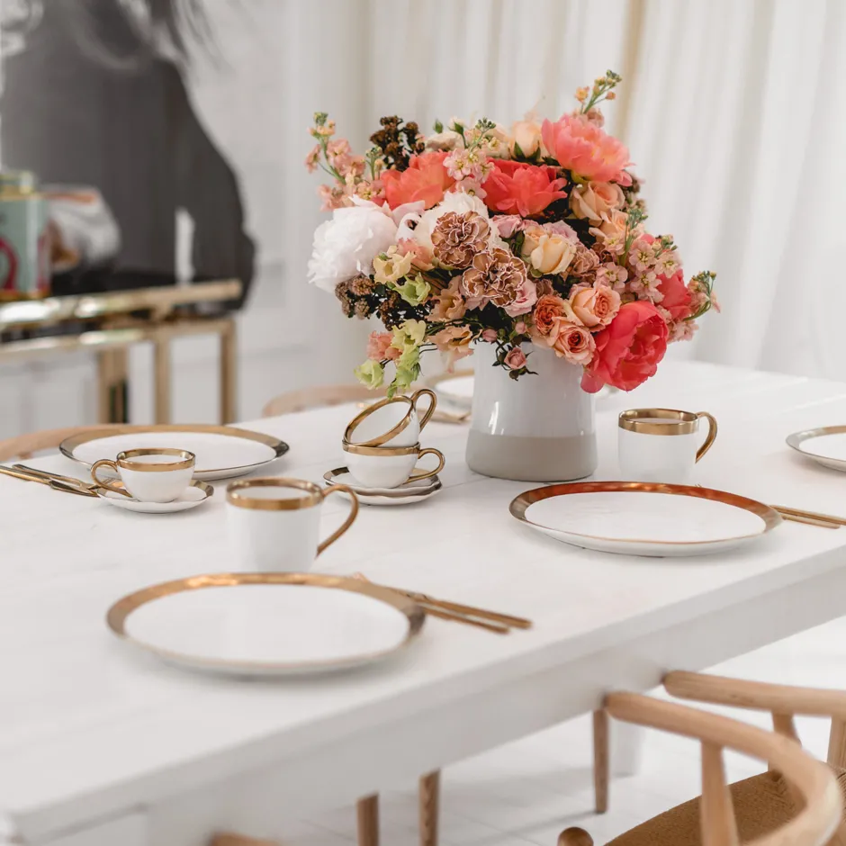 - Diese feine Geschirrserie vereint die typische Formgebung von Keramikstücken mit modernem Glamour