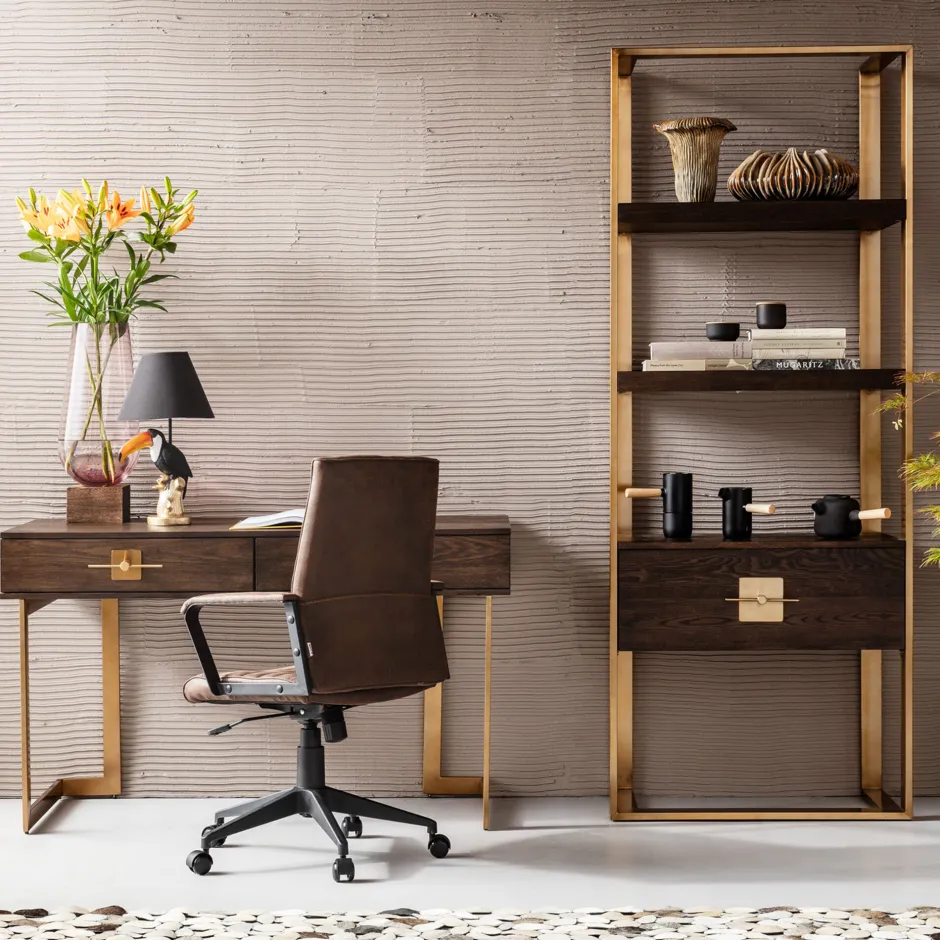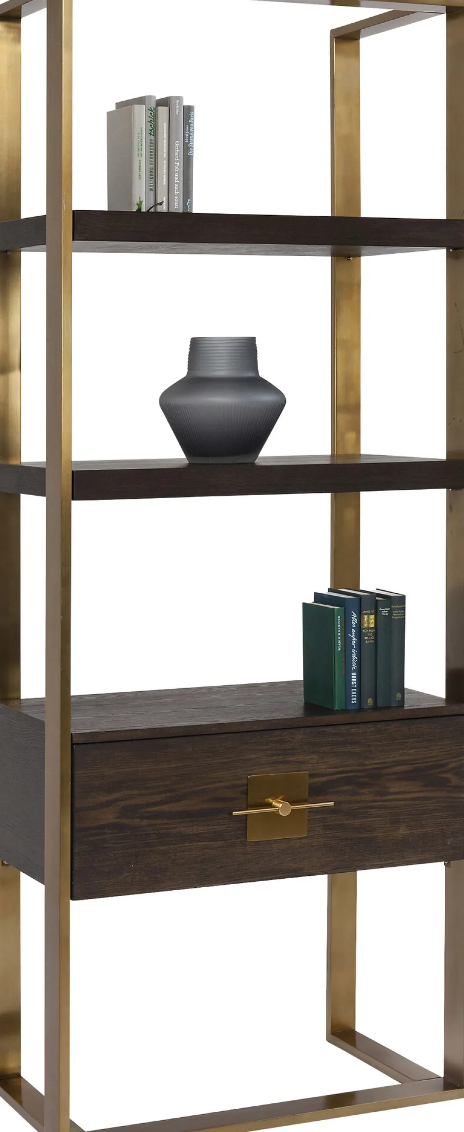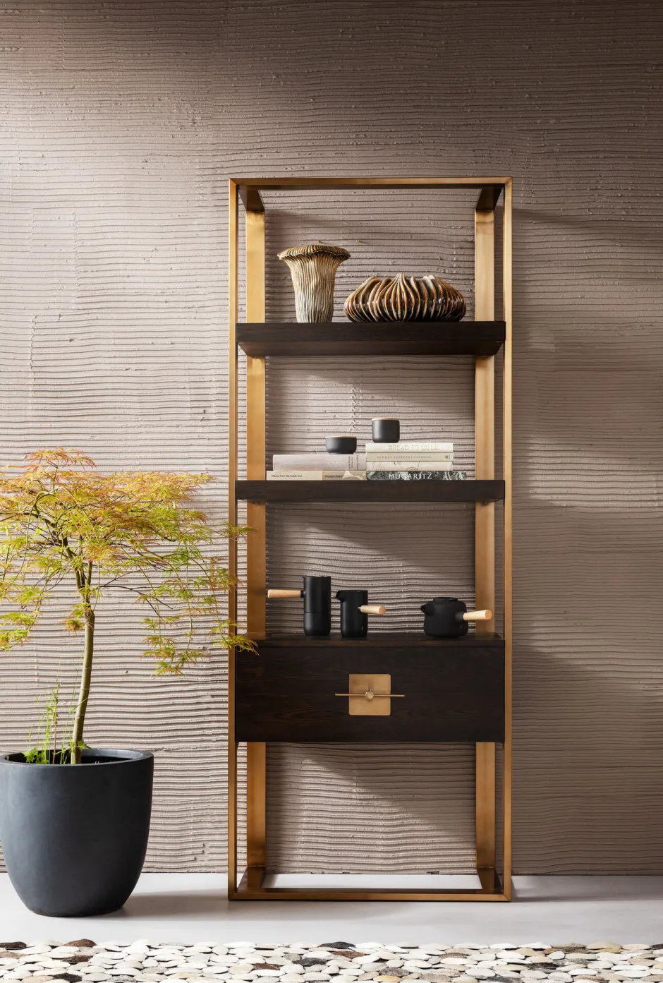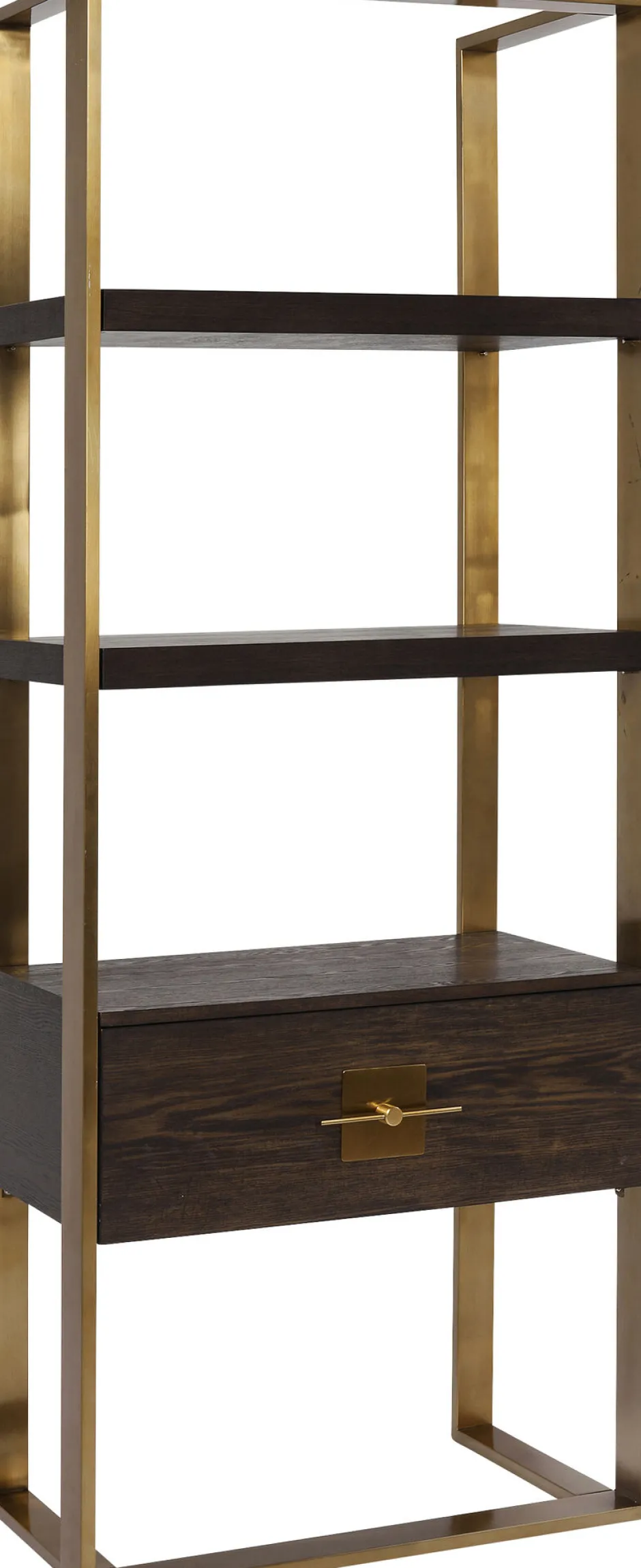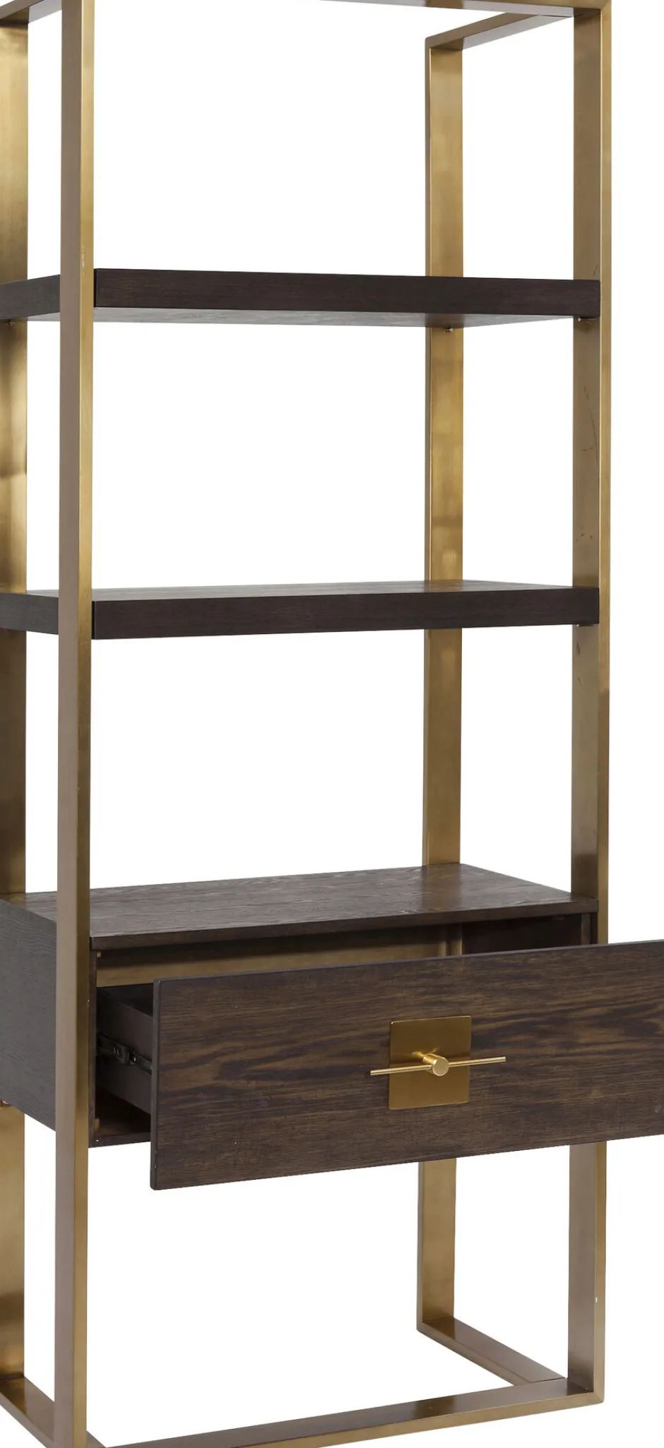 - Design-Details wie der messingfarbene Beschlag auf der Schublade geben dem Regal einen Hauch Extravaganz