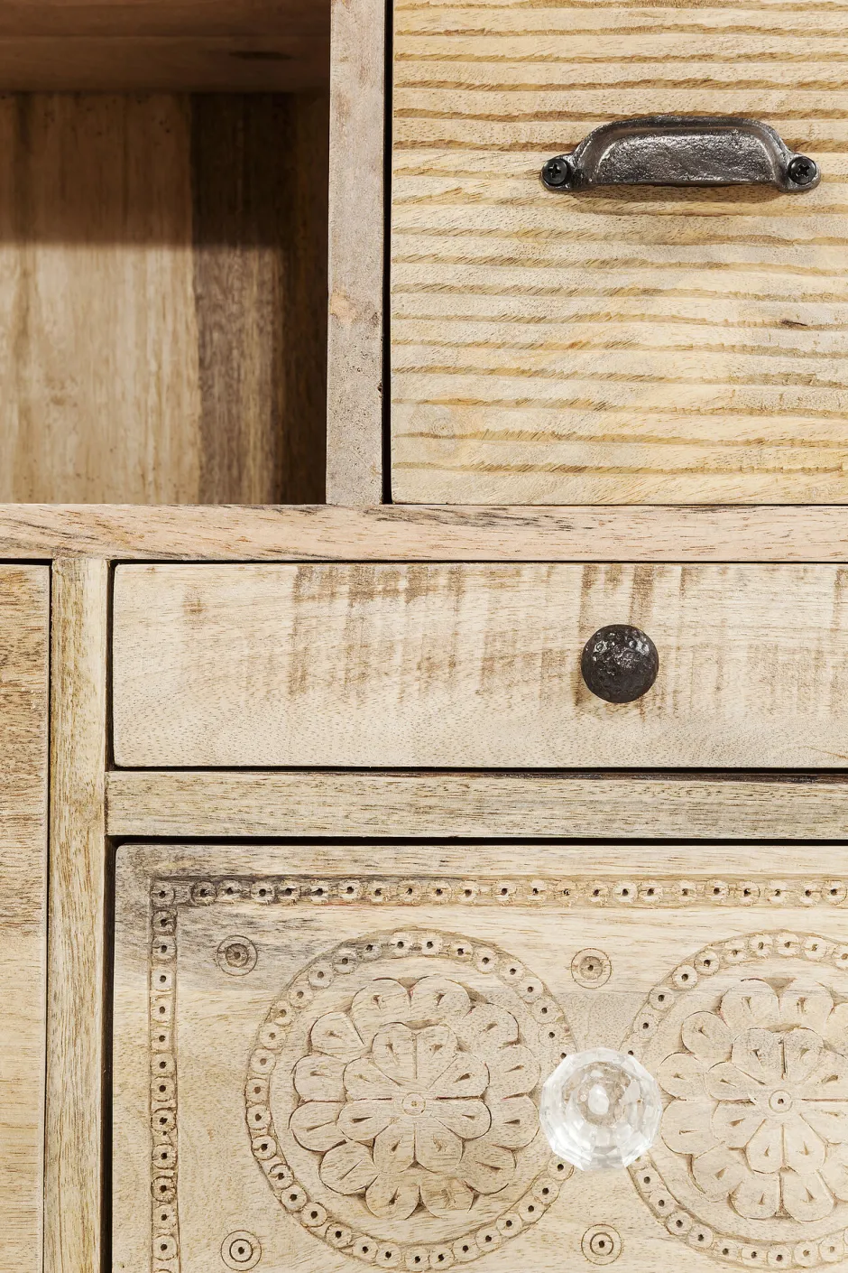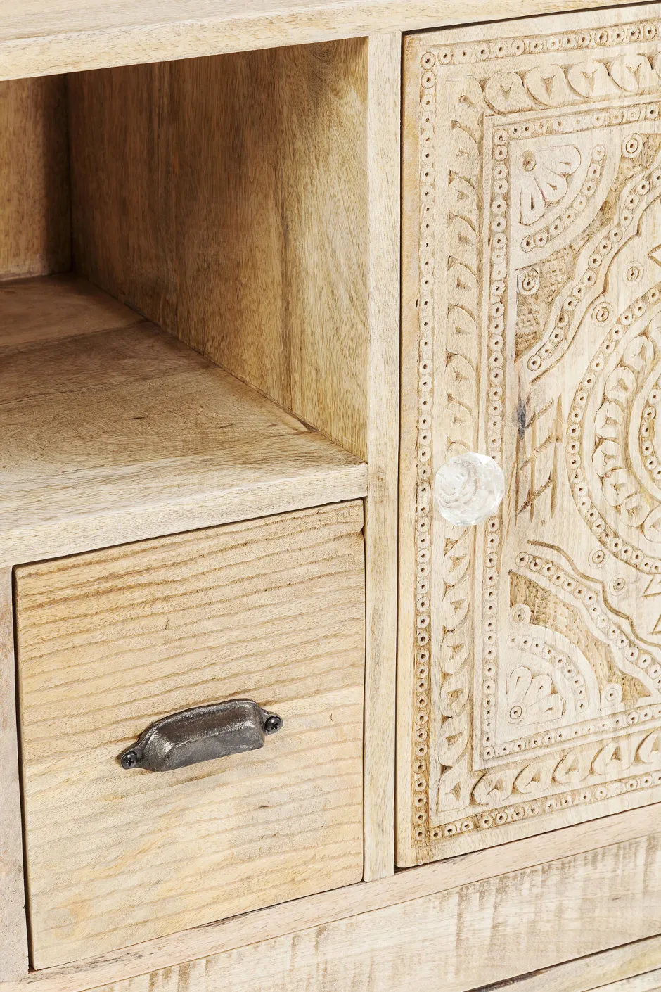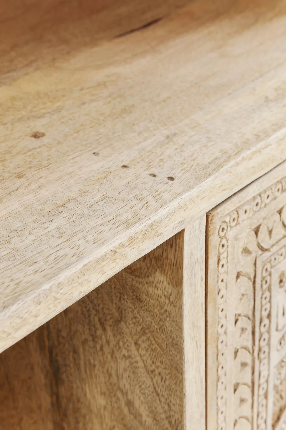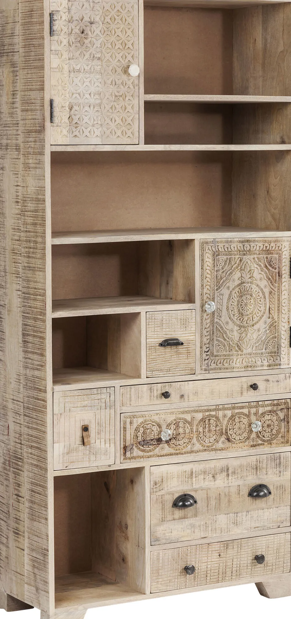 - Hohes Standregal aus Mango-Massivholz mit dekorativen, handgeschnitzten Ornamenten