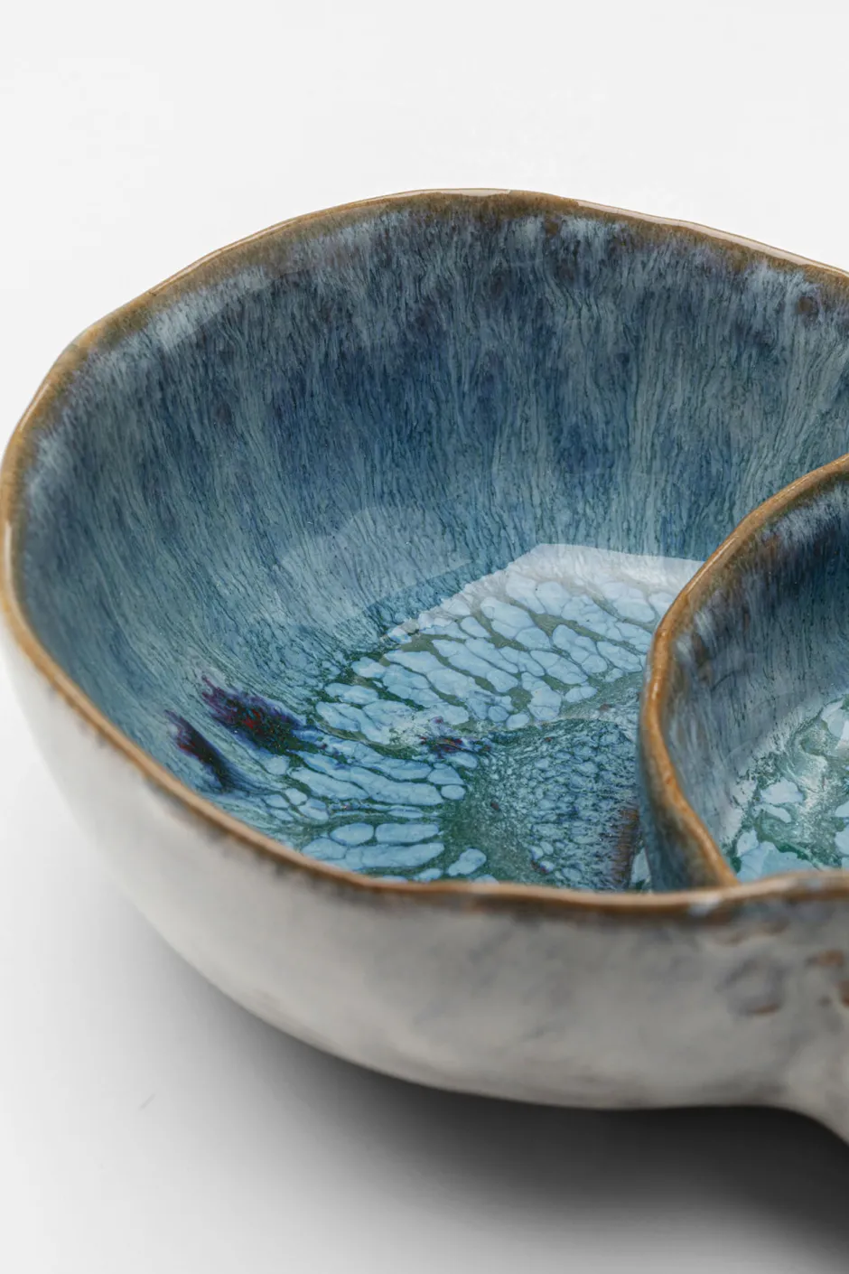 - Kleine Dip-Schalen aus Porzellan in Blau und Braun, 4.6 x 12 x 21.7 Zentimeter (H/B/T)