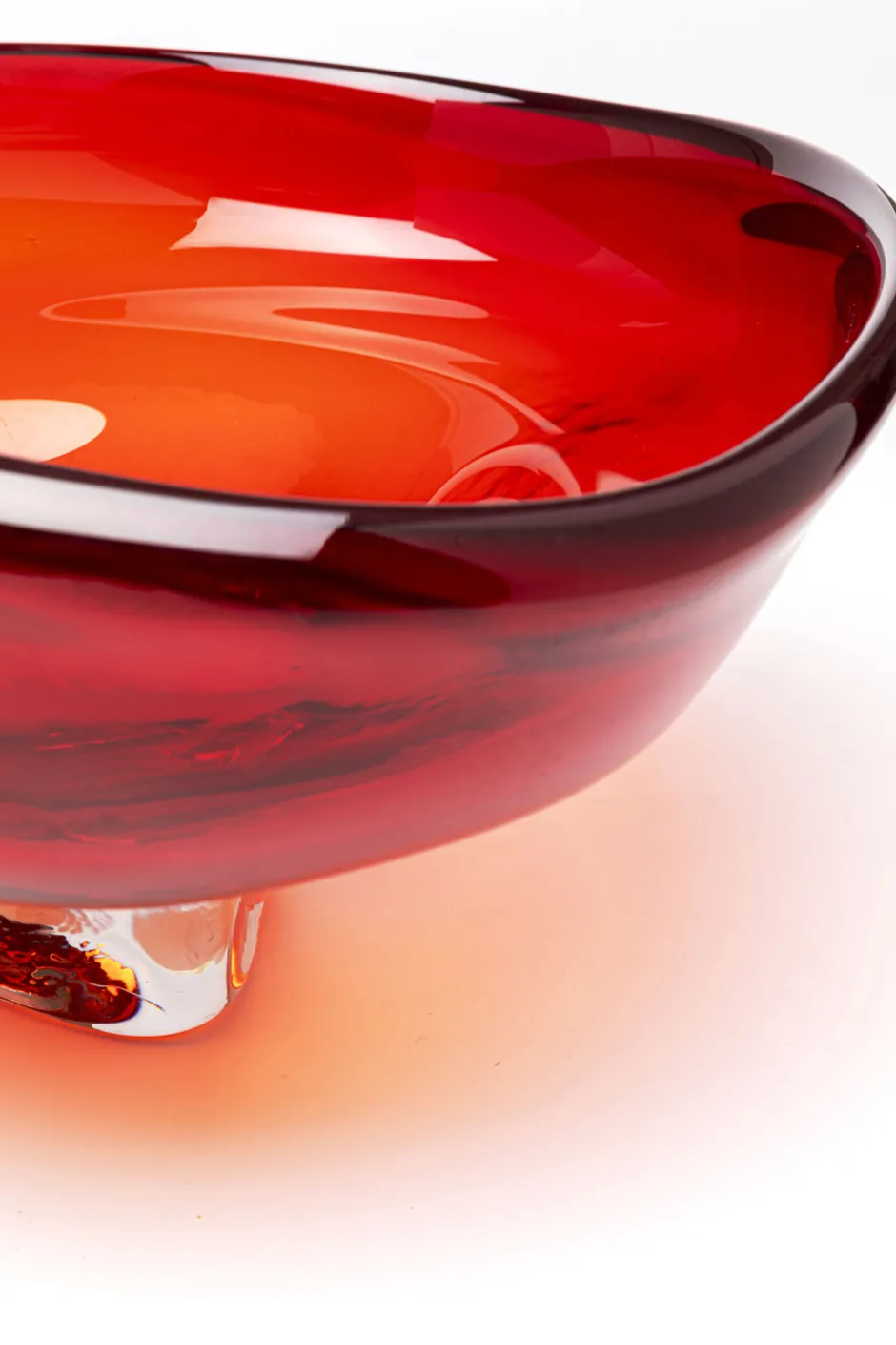 - Organisch geformte Schale aus Glas in Rot, 15.5 x 34 x 34 Zentimeter (H/B/T)