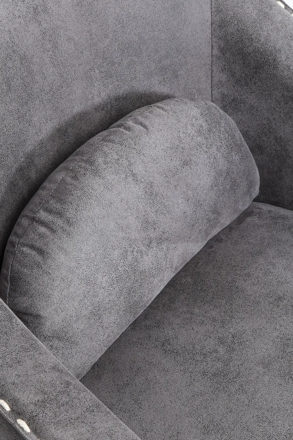 - Sehr bequemer Schaukelsessel mit grauem Bezug in Vintage Optik und mit lässigen weißen Ziernähten