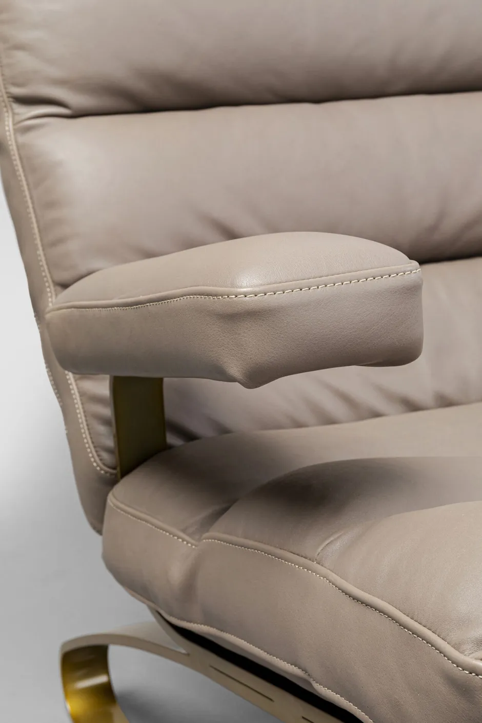 - Set aus einem Leder-Sessel mit Fußhocker in Grau, 90 x 73 x 93 Zentimeter (H/B/T)