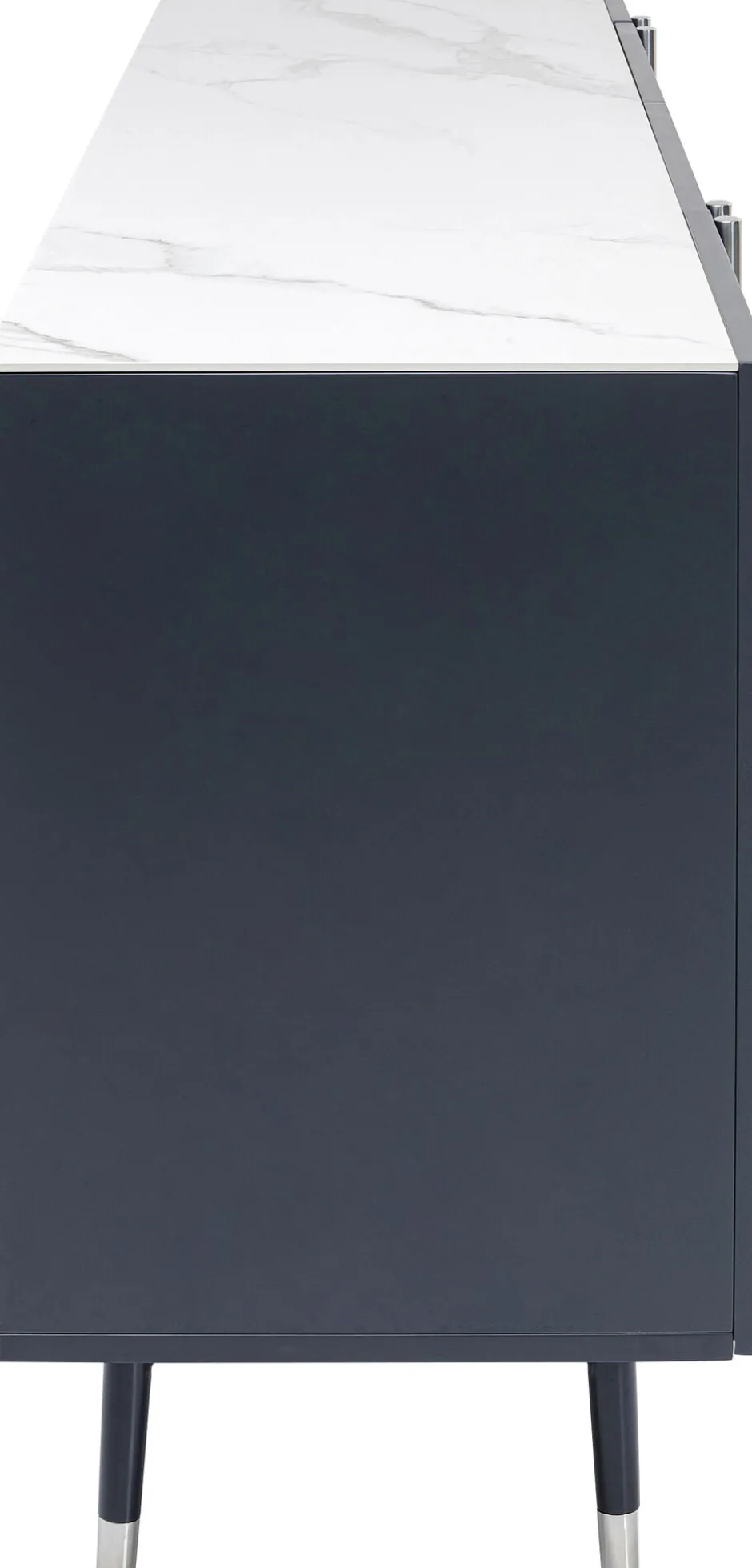 - Modernes Sideboard in dunklem Grau mit silberfarbenen Akzenten und Marmoroptik