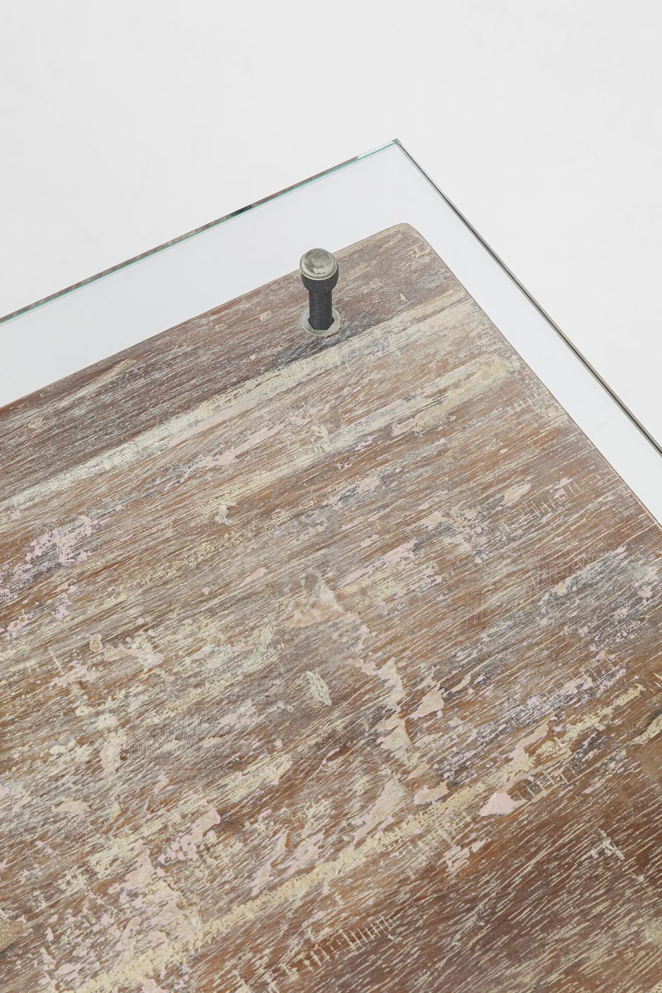 - Sideboard mit außergewöhnlichem Ethno-Design, gefertigt aus gewachstem Massivholz, lackiertem Stahl und Glas